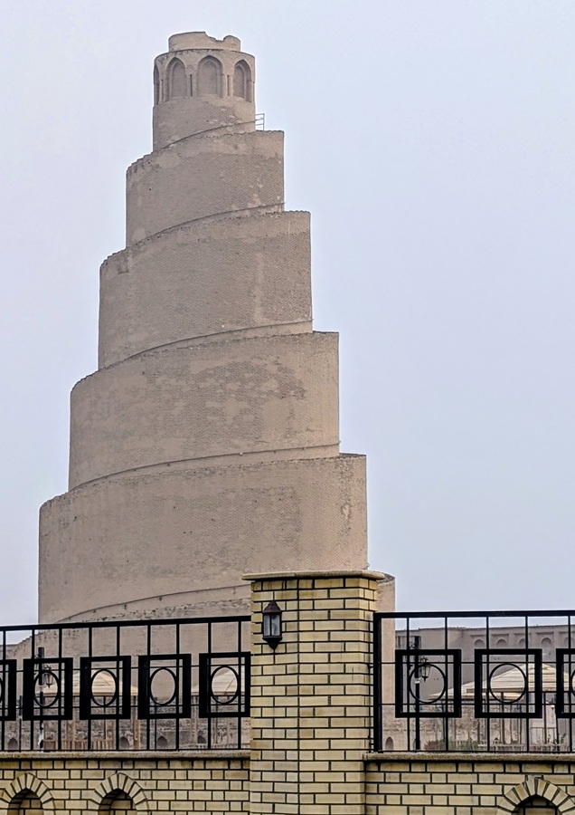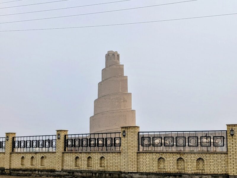 Le lendemain, nouvelle étape sous la pluie, petit arrêt à Samarra pour voir .son minaret original en colimaçon de 52m de hauteur.