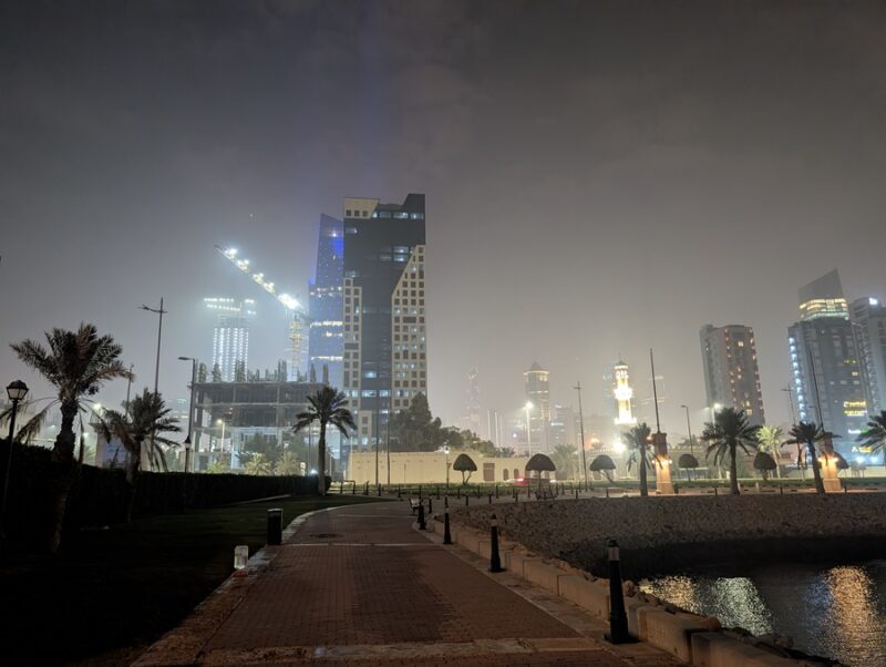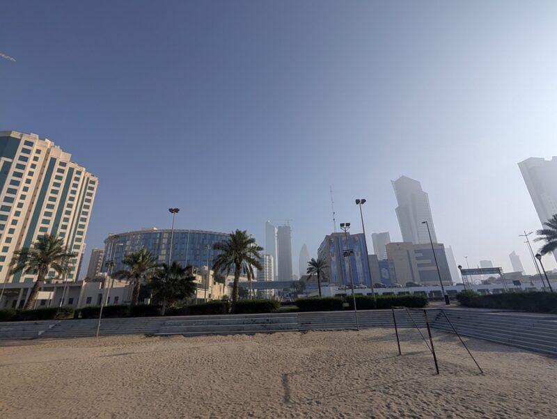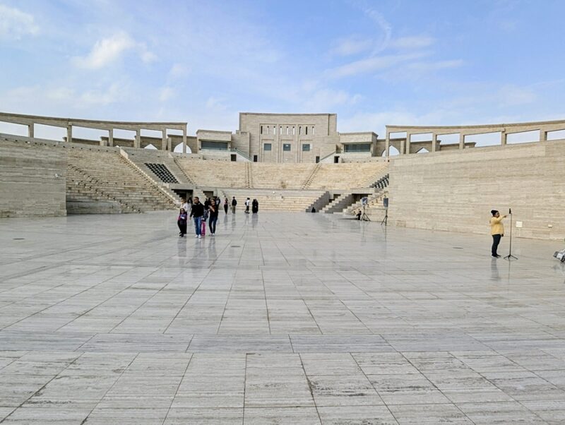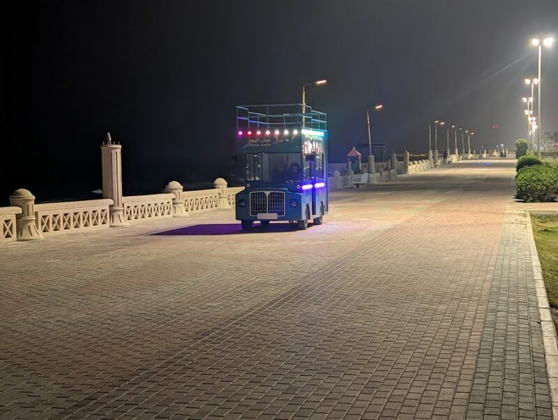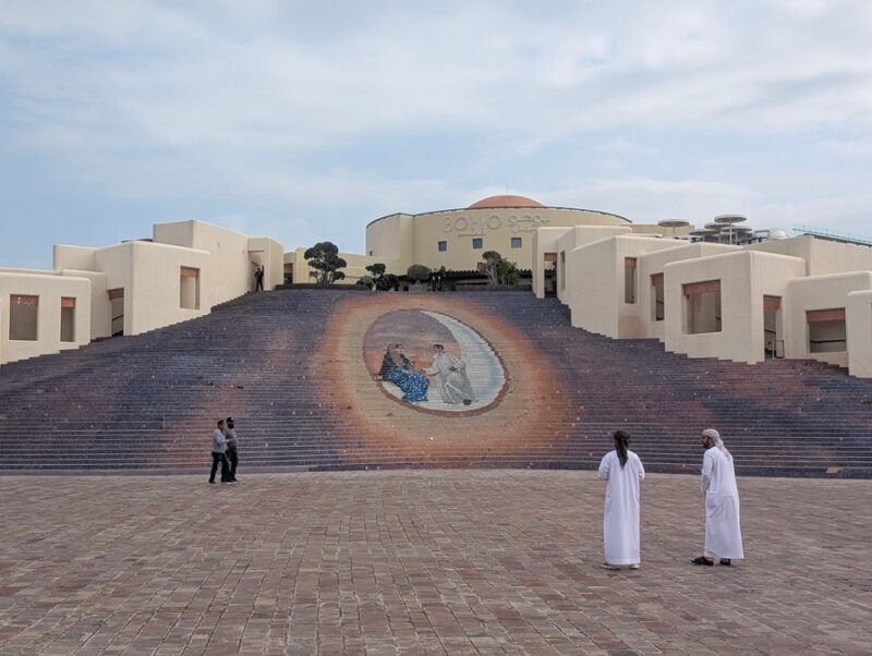 Pour finir la journée nous allons dormir sur le parking de la plage de Katara dans les quartiers du sud de Doha. Cet endroit avec ses larges avenues piétonnes bordées de boutiques de luxe et en bord de mer une promenade passant devant un grand amphithéâtre était très animé, d’autant plus qu’il accueillait un concours de fanfares ainsi que le festival international du faucon et de la chasse.