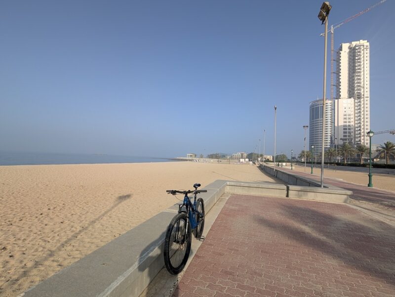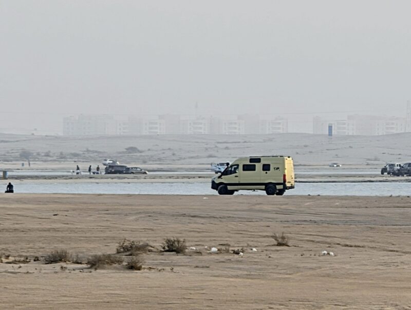 Arrivés à Koweït City en soirée, nous traversons la ville pour un bivouac sur une plage style « Beauduc » très prisée par les locaux avec leur gros 4X4.