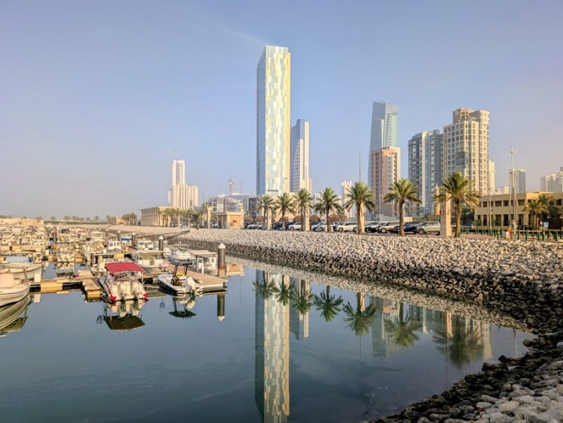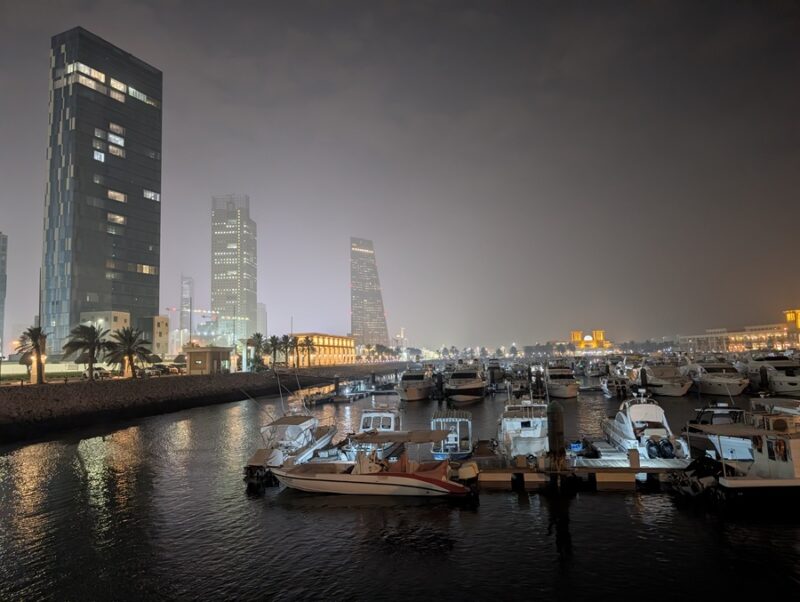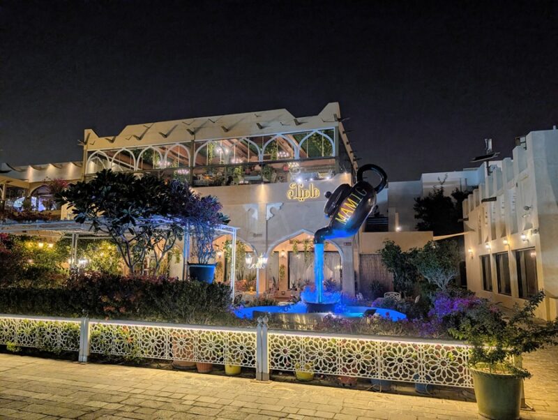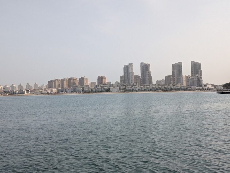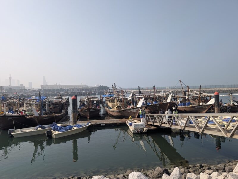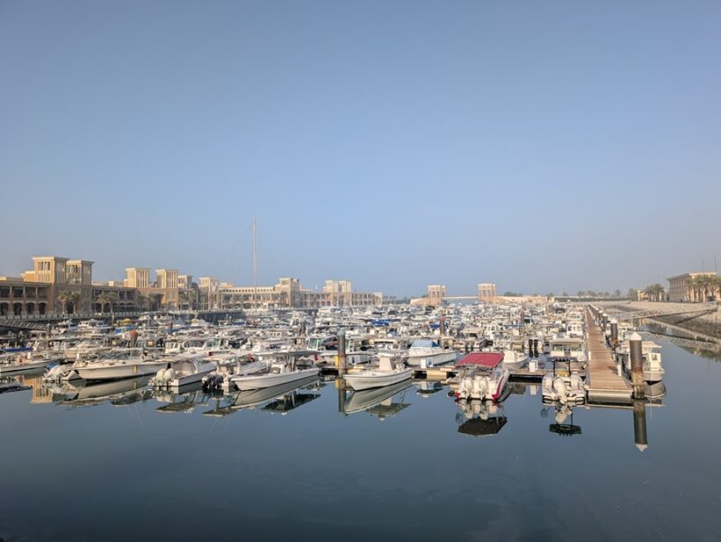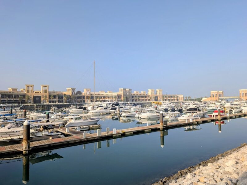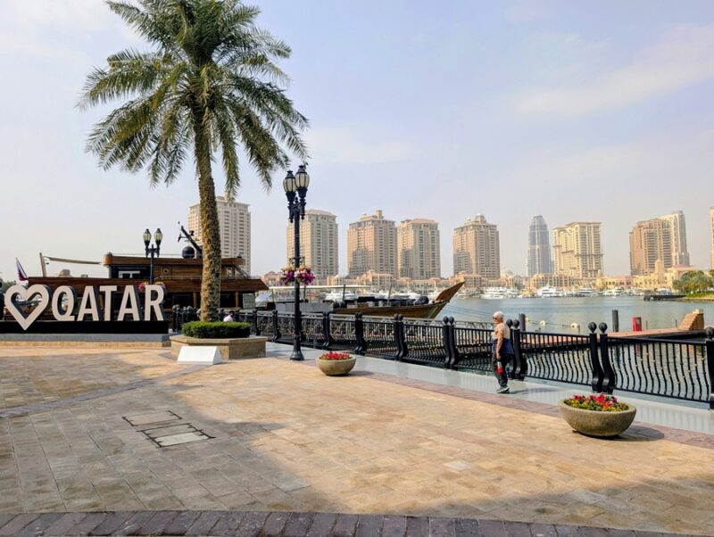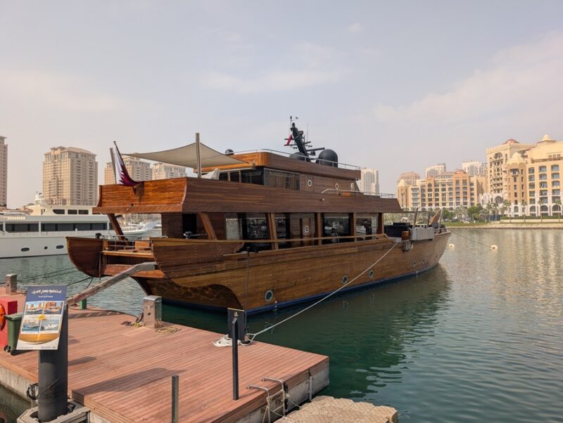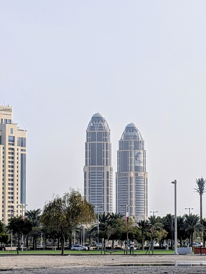 Arrivés à Doha nous allons directement visiter »Pearl Island » où nous avions trouvé un distributeur Victron mais il n’avait malheureusement pas en stock notre booster défaillant. Ce quartier accueille le port de plaisance où sont alignés les yachts luxueux et les vedettes arborant leurs moteurs surpuissants( jusqu’à 4 fois 350CV) plus loin la flotille du port de pêche est bien plus vétuste… A midi nous allons manger un plat typique du Quatar dans un restaurant sur les quais. Puis nous déambulons au pied des buildings tous plus hauts et originaux les uns que les autres.