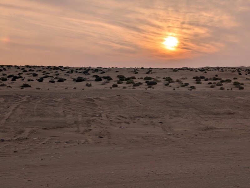 A l’approche du Quatar nous sortons enfin de l’ uniformité des paysages, le relief bien que modeste est agrémenté de petites dunes. Bivouac avec vue sur le Quatar sur la plage bien aménagée de Al-Ahsa à quelques km. de la frontière.