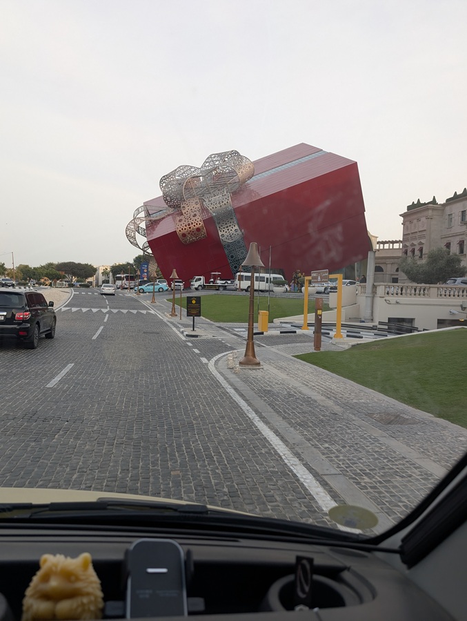 Notre entrée au Quatar correspond à leur fête nationale, du coup à la frontière on nous offre un petit cadeau pour l’occasion:broches et cartes postales.