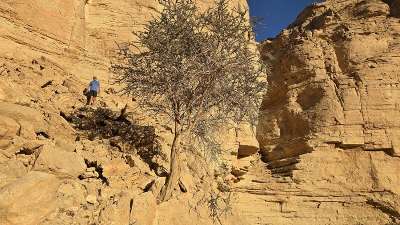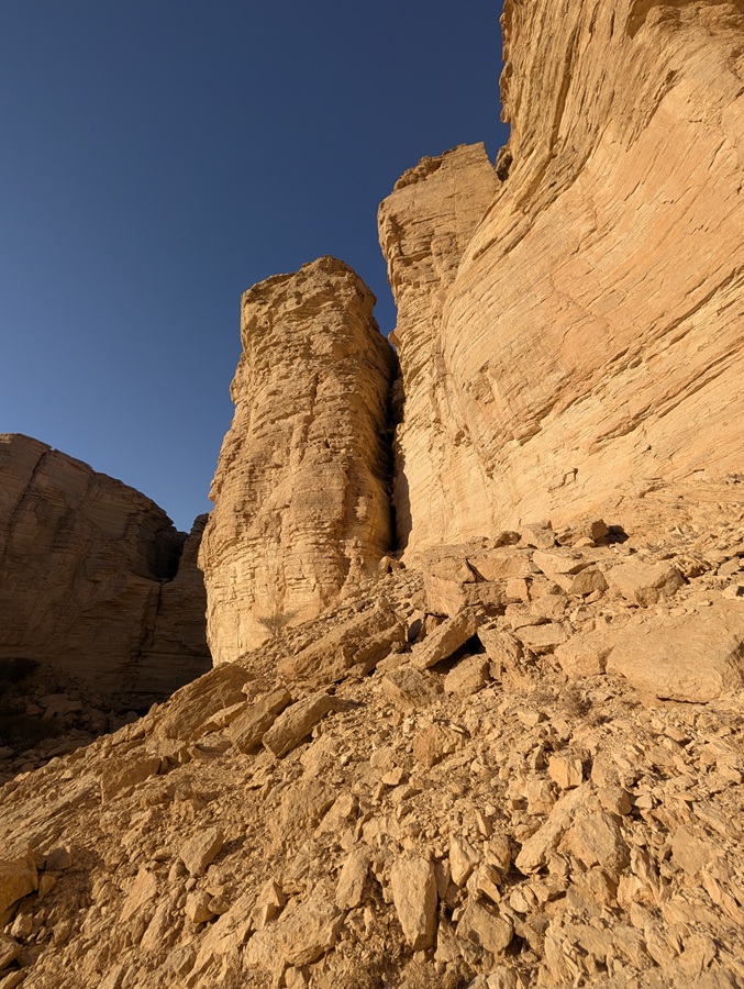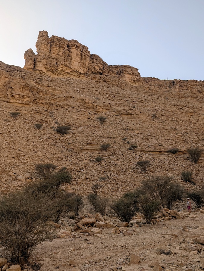 Le bivouac suivant se fait au fond d’un wadi où les 2 Alain essayent de monter sur le plateau en escaladant les rochers. Peine perdue les rochers sont infranchissables.