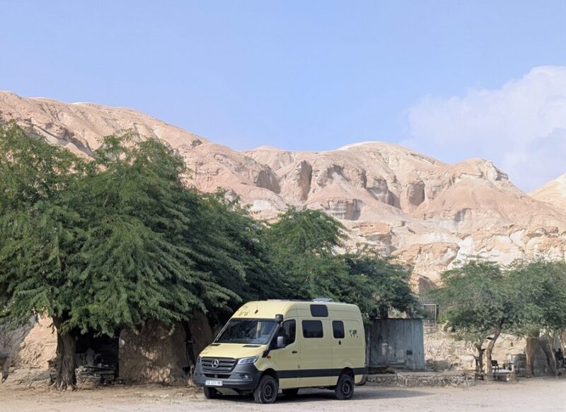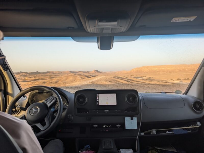 Claude a réussi à avoir le point spectateurs du rally, malheureusement nous nous retrouvons au milieu d’une grande plaine. Nous nous consolons en faisant connaissance avec Morgane et Maxime des jeunes voyageant en sprinter 4×4 et passons la soirée autour de l’apéro sous un beau ciel étoilé.