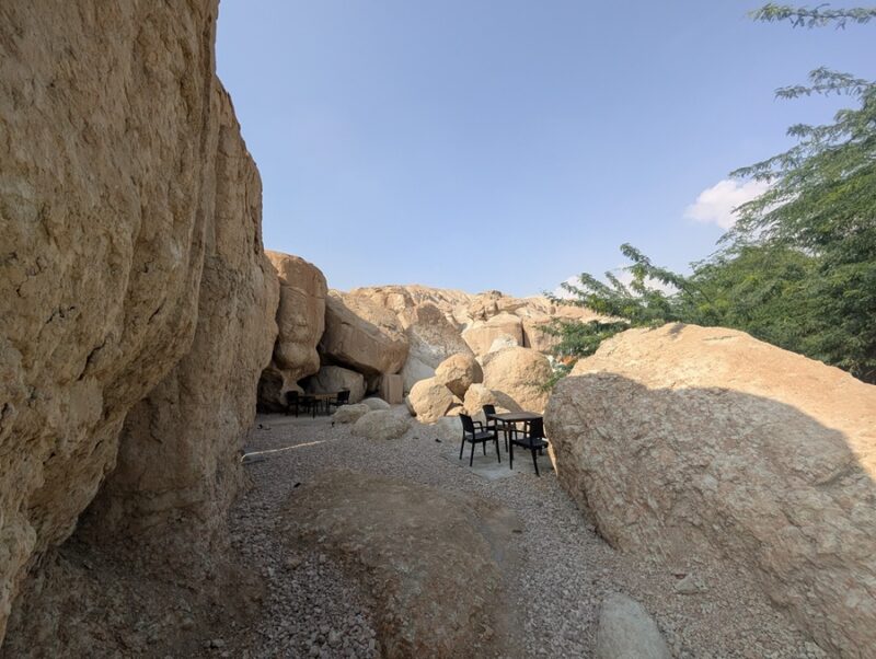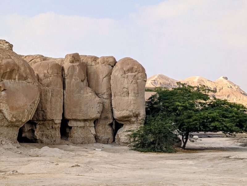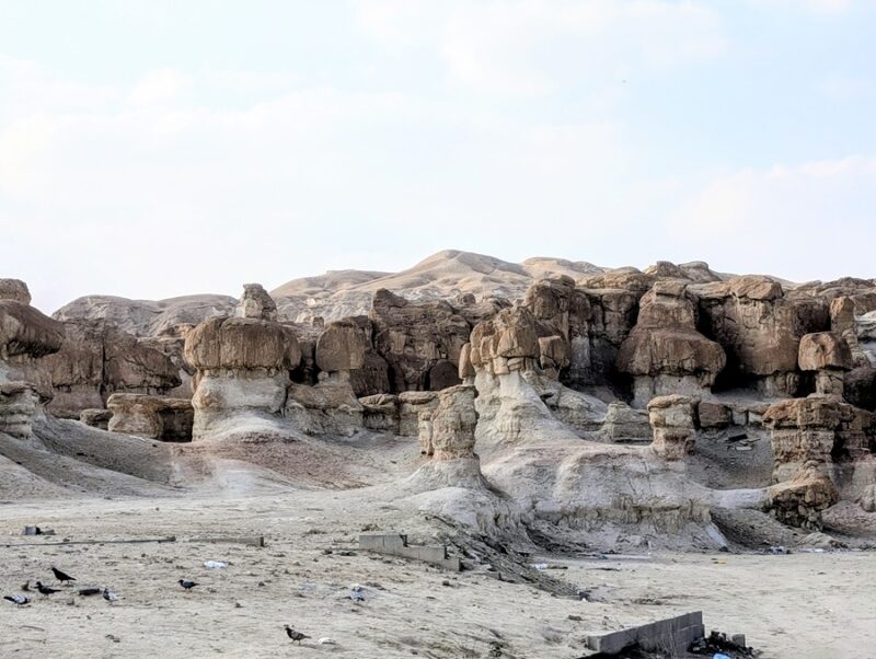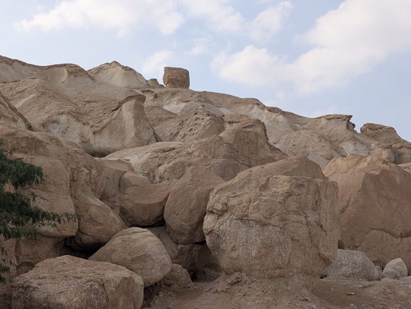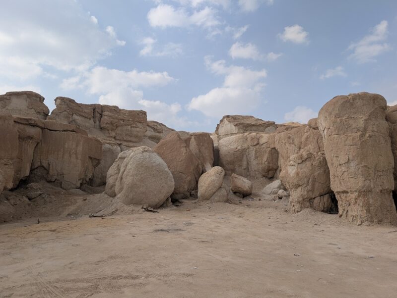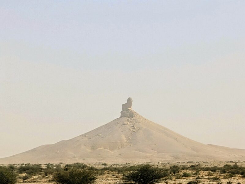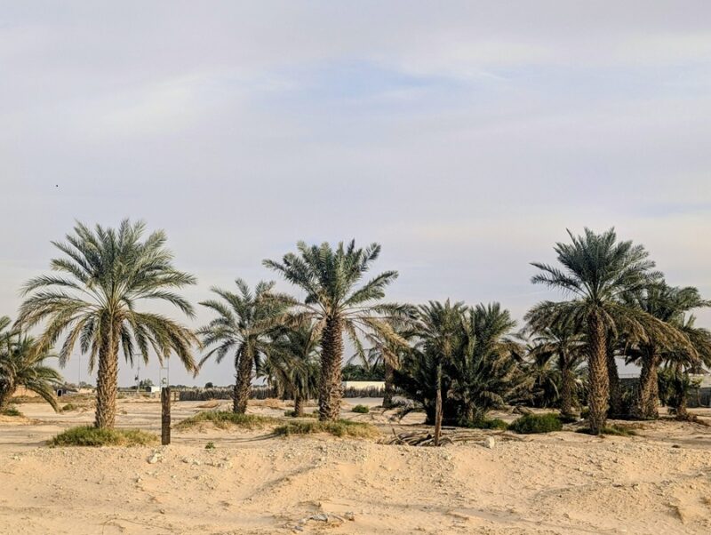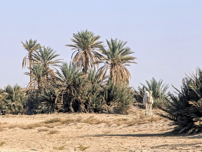 puis au bout de 130km nous avons la surprise d’arriver à Al Hufuf au milieu de palmeraies au pied d’un chaos rocheux.