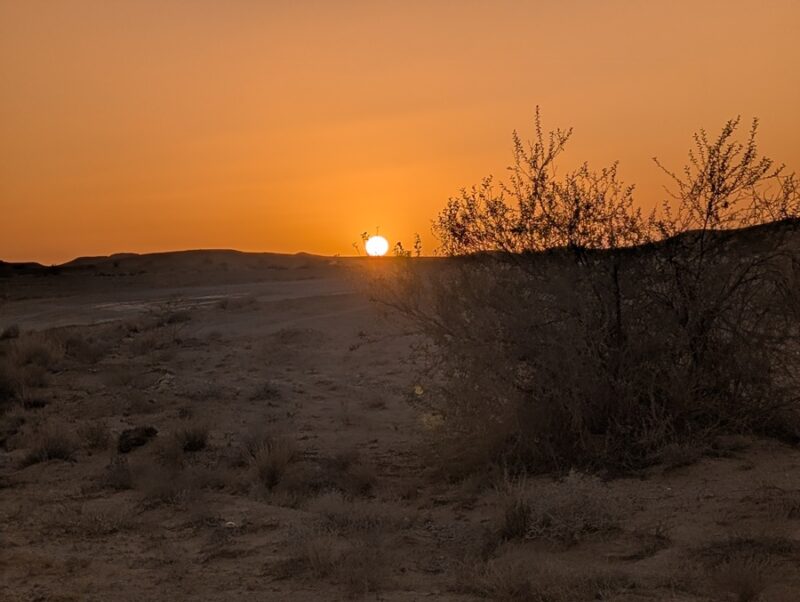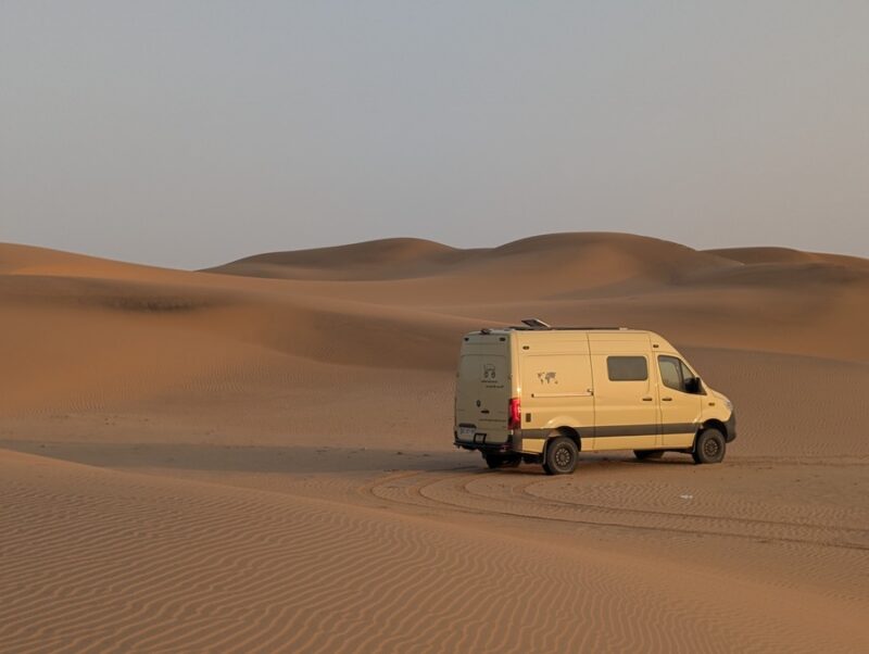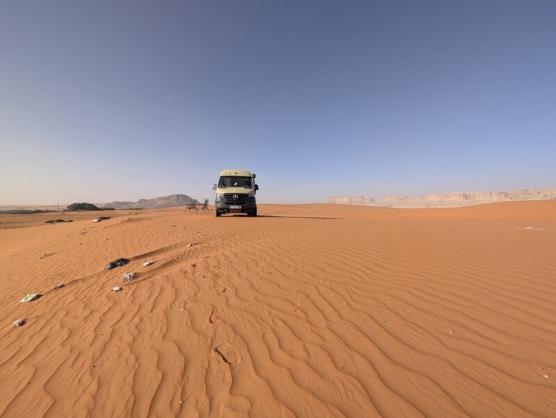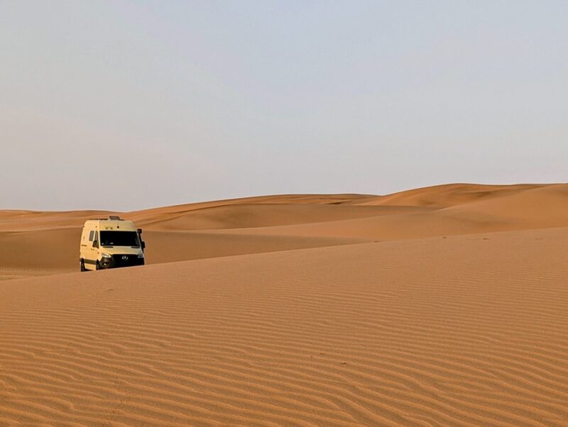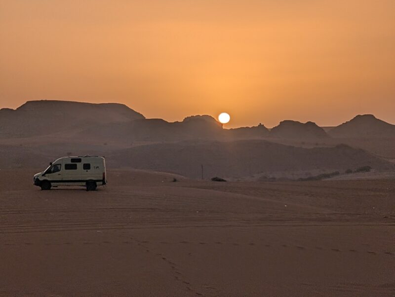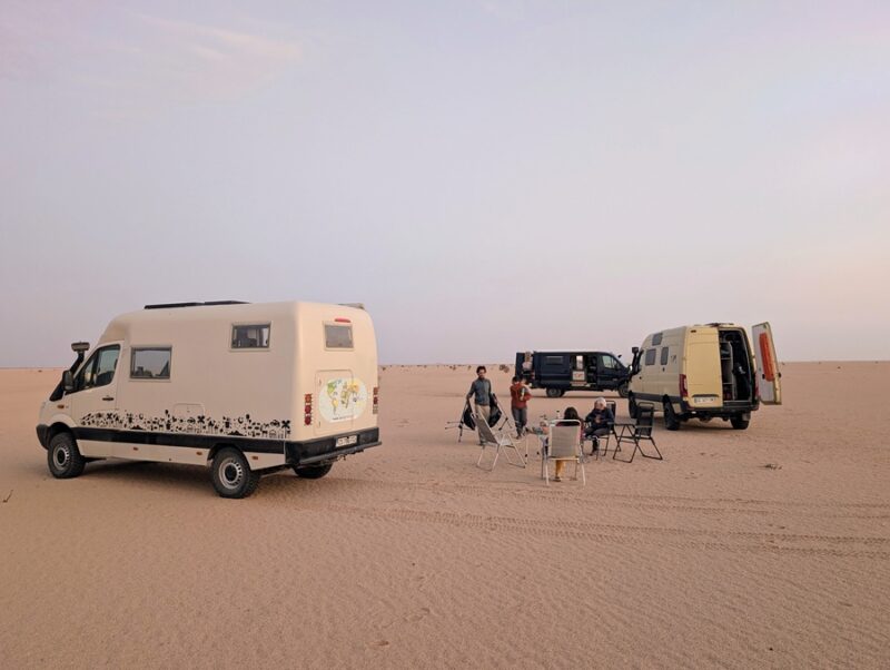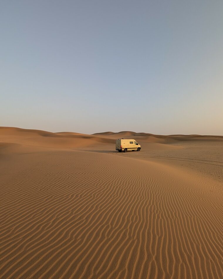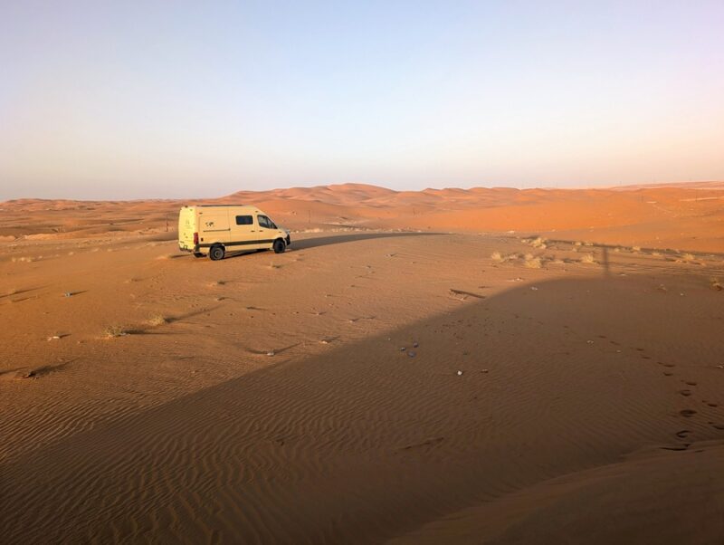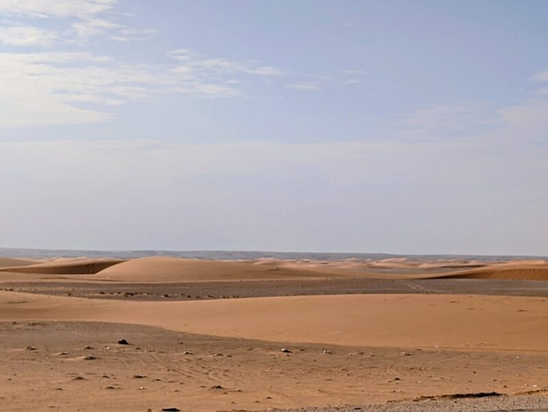 Nous nous arrêtons pour la soirée de Noël à l’écart de la civilisation à l’entrée du plus grand désert de sable du monde (583000 Km2).