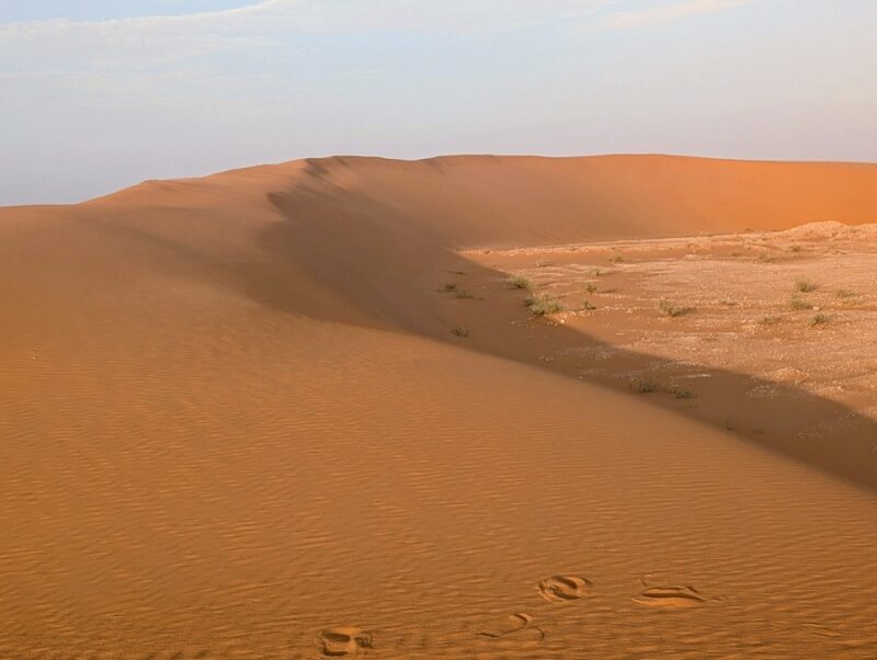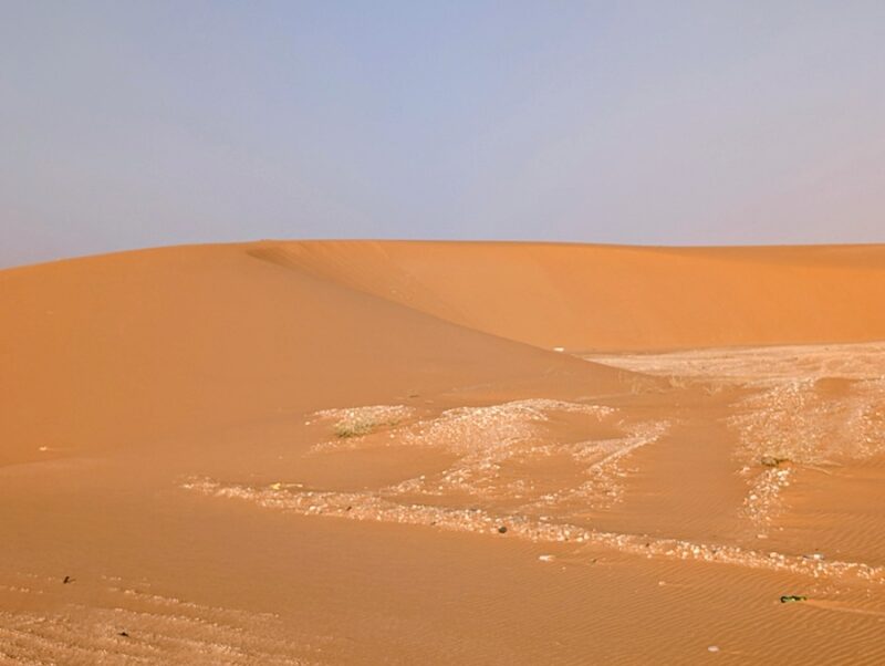 Le lendemain nous avons traversé d’est en ouest le cordon dunaire pour nous rendre au sud de Riyad dans le lit d’un oued mentionné sur la carte « pools of sha ib Luna ». Nous avons demandé aux locaux mais apparemment ils ne connaissaient pas ou n’ont pas compris notre demande.