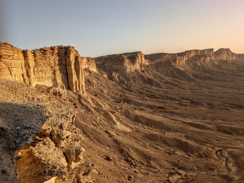 L’objectif suivant est le site de « Edge of the world » que nous atteignons par une piste cahotique qui nous mène en haut des falaises avec une vue magnifique. Nous sommes étonnés mais ravis de nous retrouver seuls sur le site à l’heure du dîner.