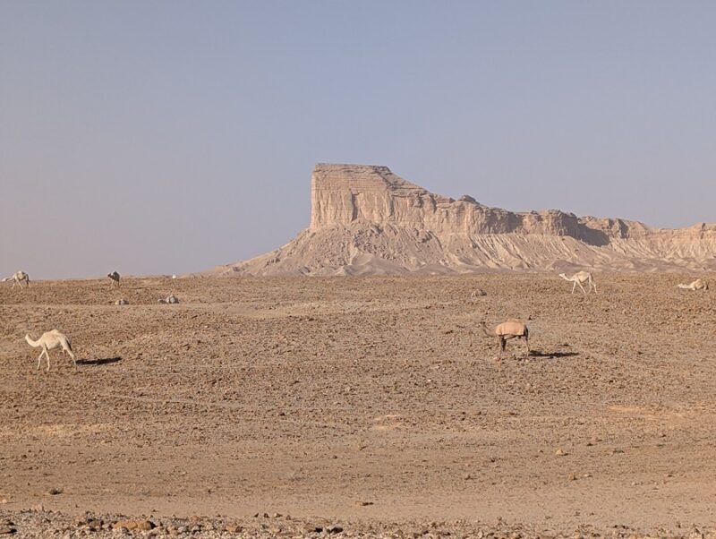 Nous reprenons notre route vers le sud et après une cinquantaine de km de banlieux nous continuons notre chemin à travers ces plaines où nous commençons à voir des dromadaires. Nous nous approchons de la frontière avec l’Arabie Saoudite que nous traverserons le lendemain.
