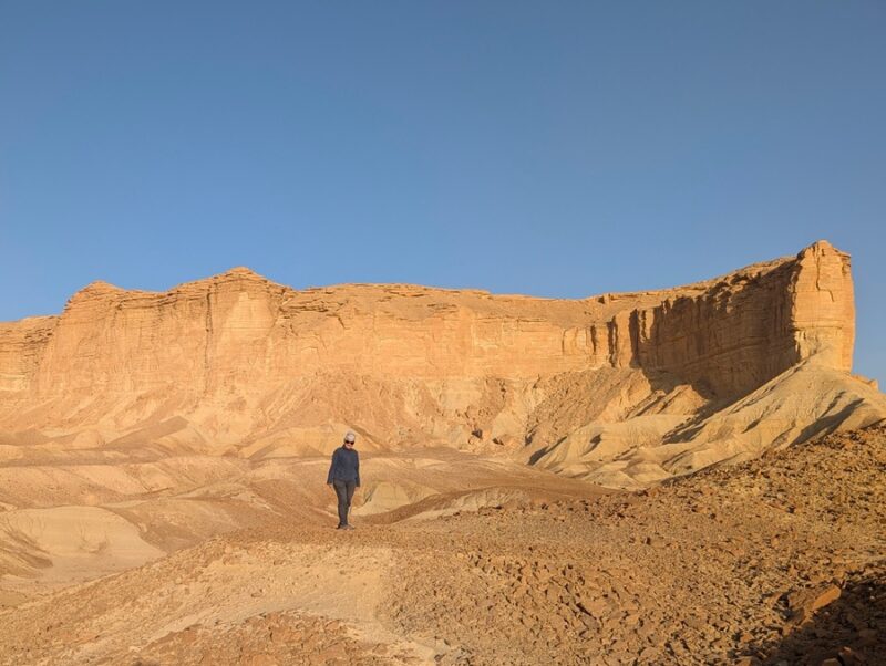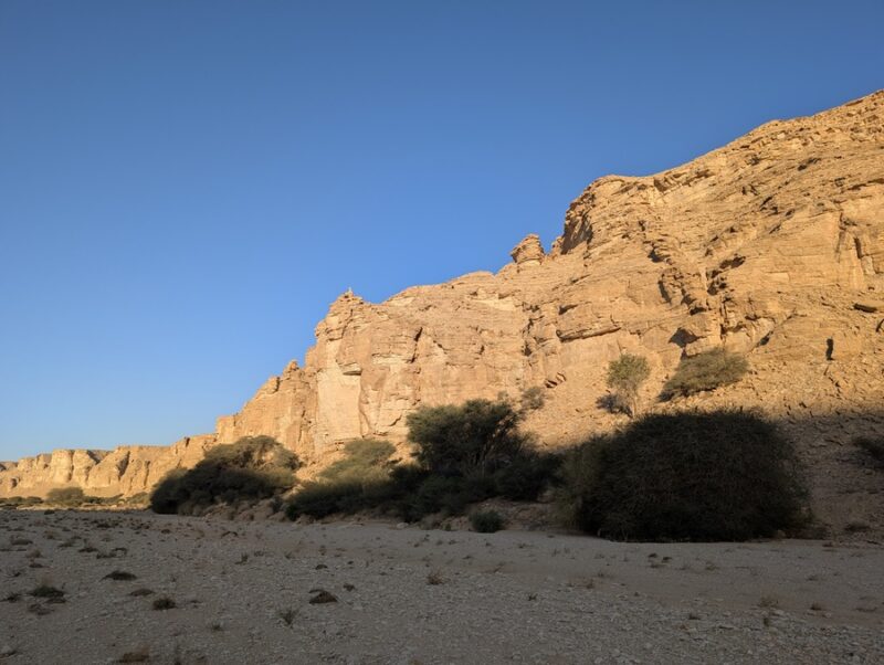 Puis direction la réserve d’Hawtat Bani Tamin, nous y arrivons vers 15h. Les gardiens semblent sortir de leur sieste, nous semblons les déranger. Au bout d’une heure ils nous expliquent qu’il vaut mieux revenir demain matin à 6h30 si nous voulons voir les animaux. Nous acceptons et partons trouver un bivouac pour la nuit.
