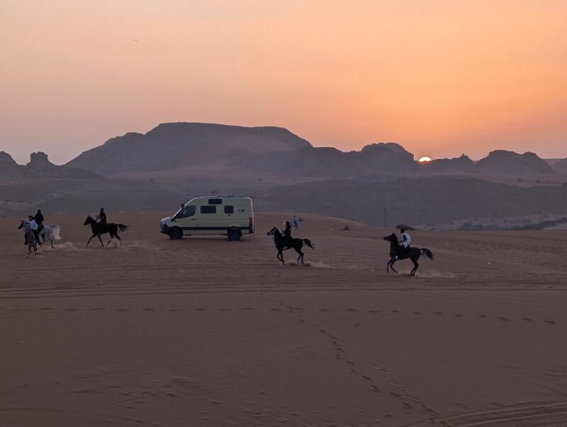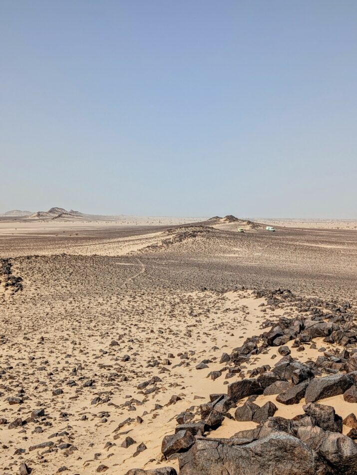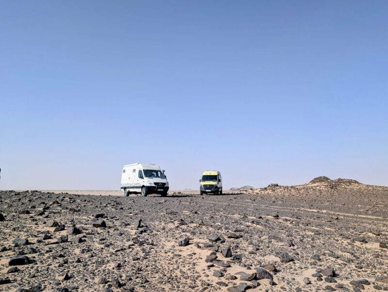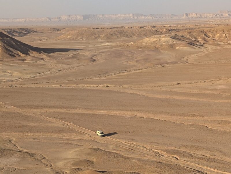 Maintenant nous sommes 2 équipages à continuer la descente vers le sud à travers les plaines désertiques, pour aller voir le passage du Dakar à Wadi-ad-Dwasir.