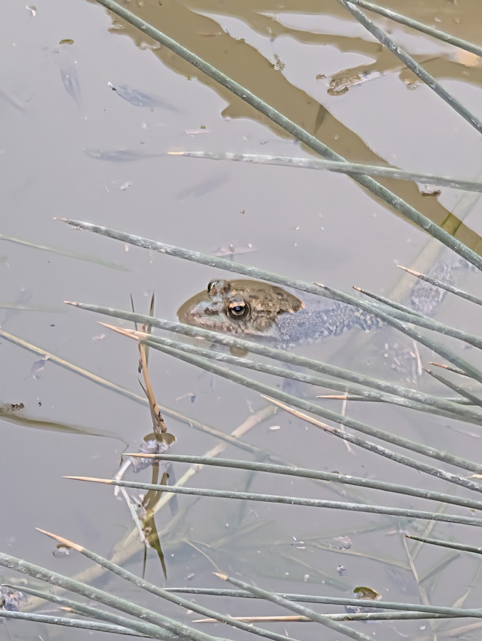 En remontant à pied jusqu’au pied d’une falaise nous avons trouvé un trou d’eau squatté par les grenouilles…