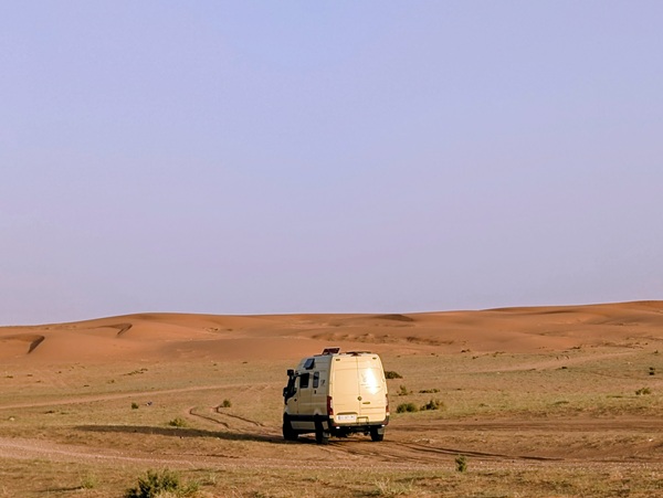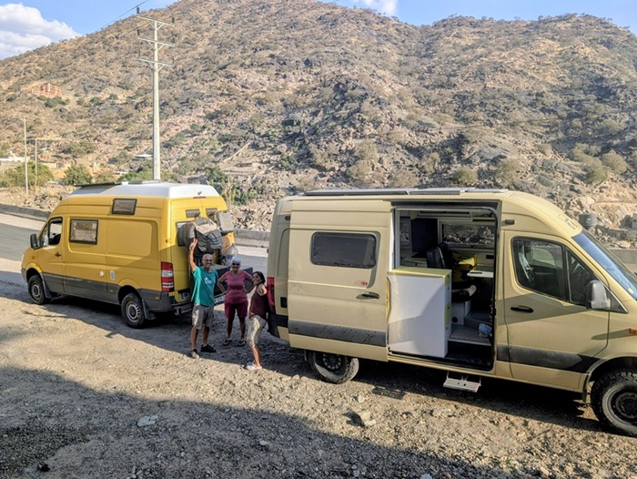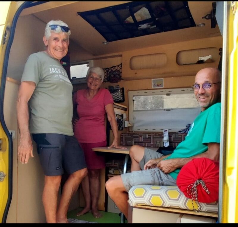 Au détour d’une route, nous rencontrons Agnès et Yonel et leur sprinter 4×4 jaune (nous les connaissons par polarstep). Nous avons eu plaisir à bavarder 2 bonnes heures avec eux en bord de route et espérons les revoir plus tard car nos routes se croisent.