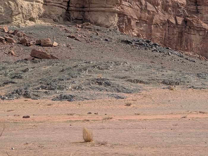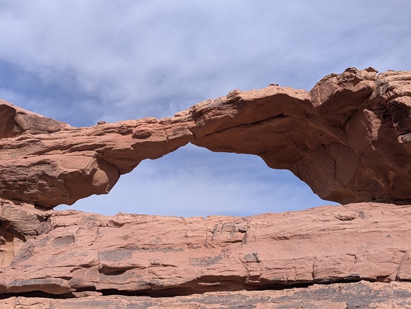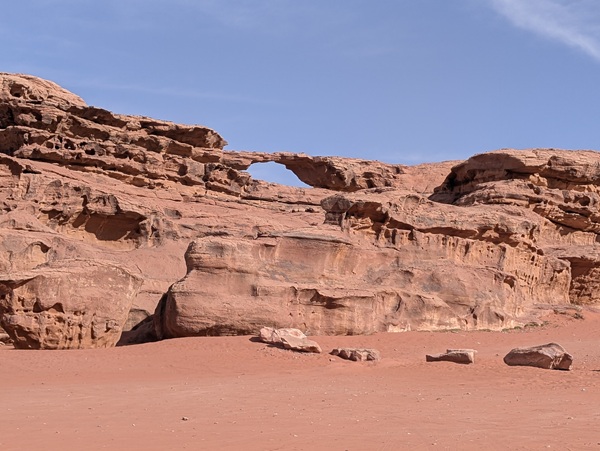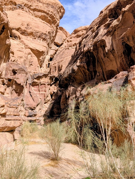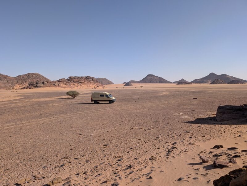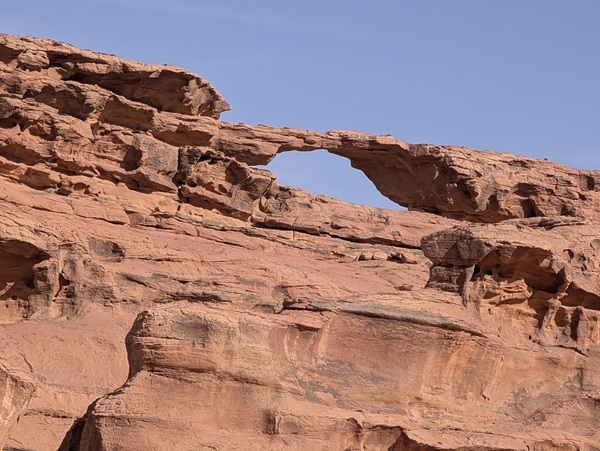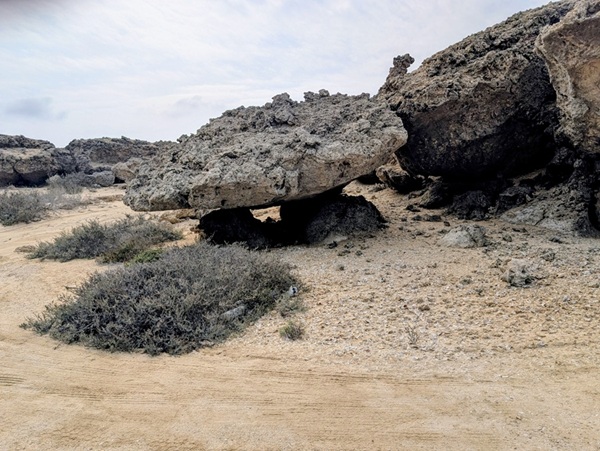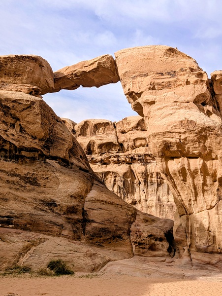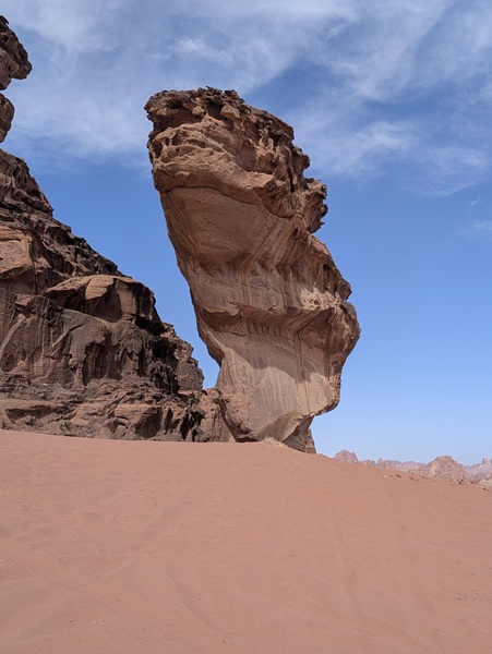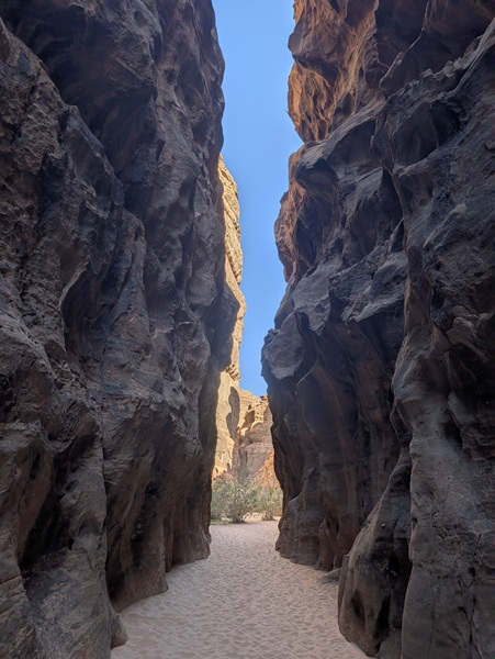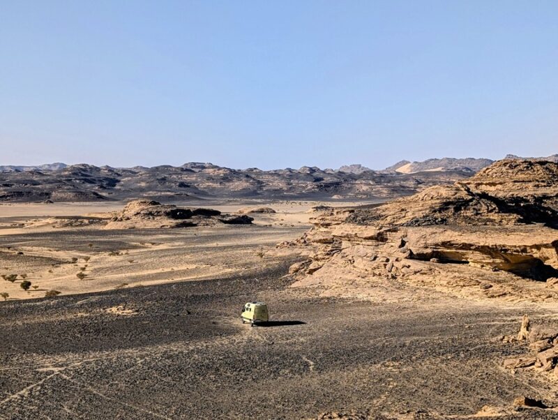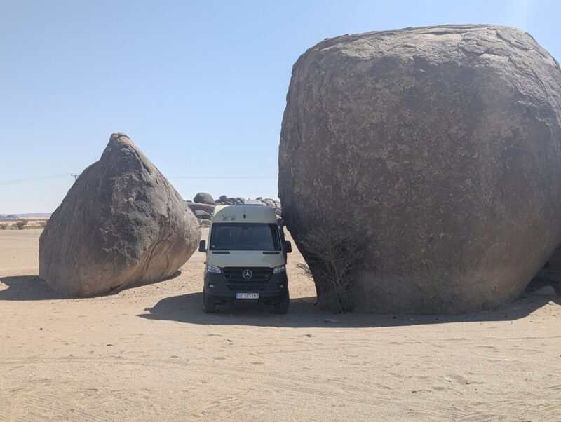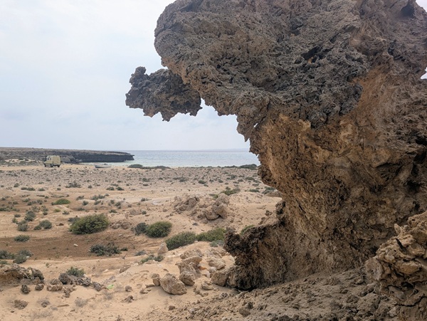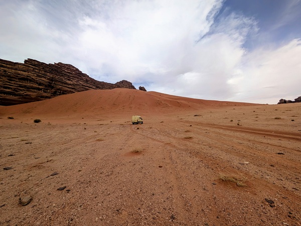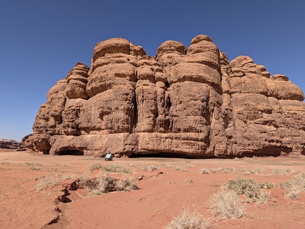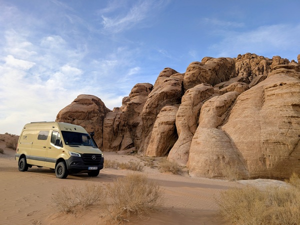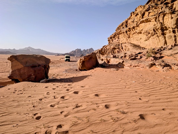 Après ce moment culturel, nous reprenons la route pour aller à Rainbow Arch et nous finissons la journée à Al Naslaa rock (roche fendue). La piste est sablonneuse mais Vagabond passe sans encombre.