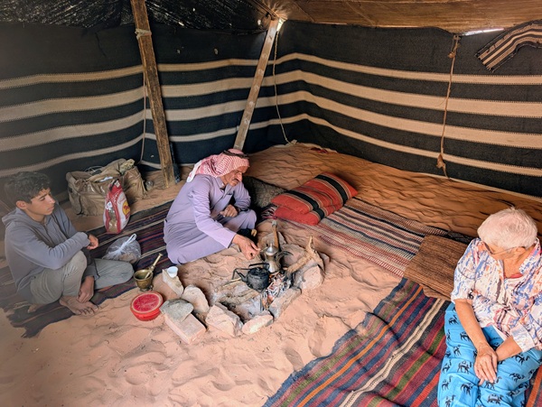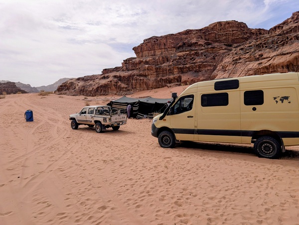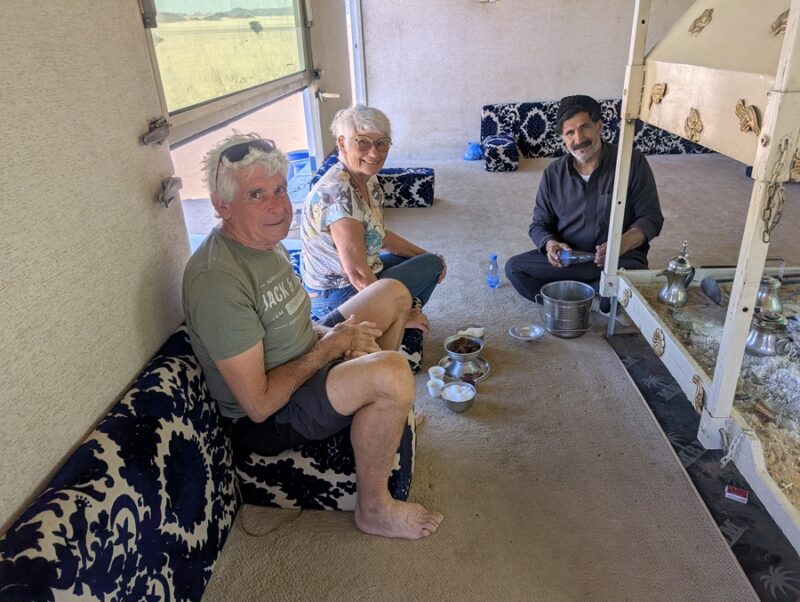 Pour nous la Jordanie est synonyme de Pétra ce lieu magique de temples Nabatéens. Mais avant de nous y rendre nous passons par Wadi Rum où nous avons sillonné pendant 2 jours les pistes sablonneuses, les canyons et les dunes sur près de 100km. Ce fut un régal des yeux. Nous avons même été invités par un bédouin qui vit sous sa tente avec son fils à venir boire le thé et le café.Nous leur avons donné du pain et des fruits car ça faisait 2 jours qu’ils n’avaient pas mangé.