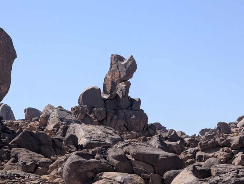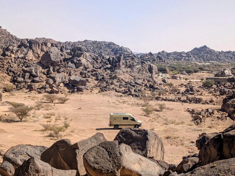 Notre projet du moment est d’aller sur les îles Farasan dans la mer rouge mais avant d’y arriver nous visitons quelques lieux comme Yadamah où nous rencontrons un vaste chaos de pierres volcaniques à 1300m. d’altitude.