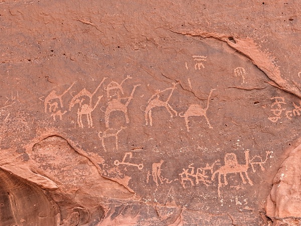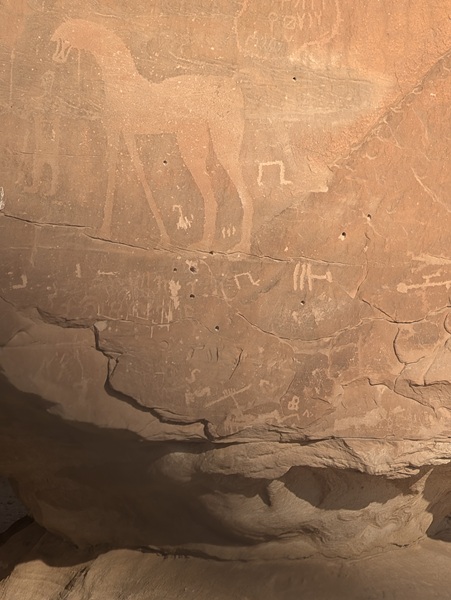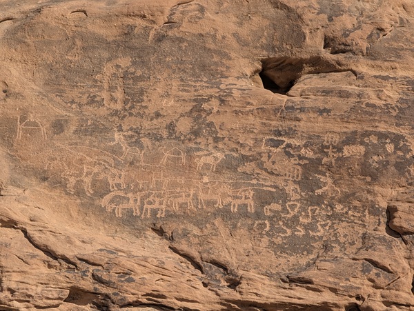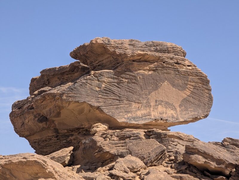 En route nous nous arrêtons à Jubbah pour visiter ses pétroglyphes classés à l’UNESCO.