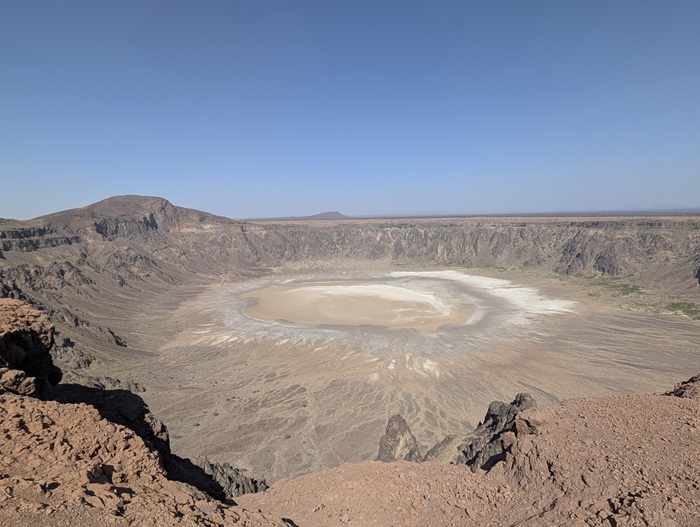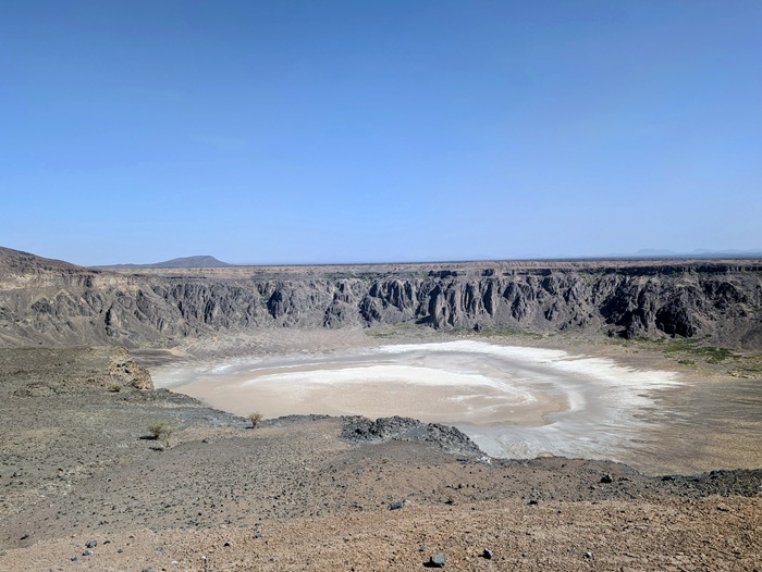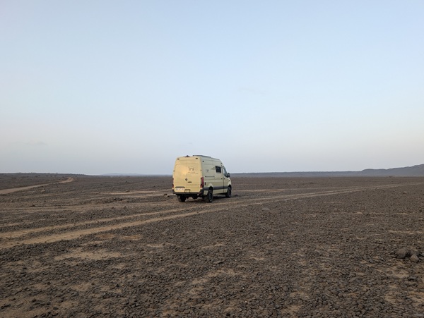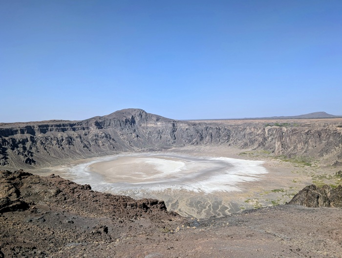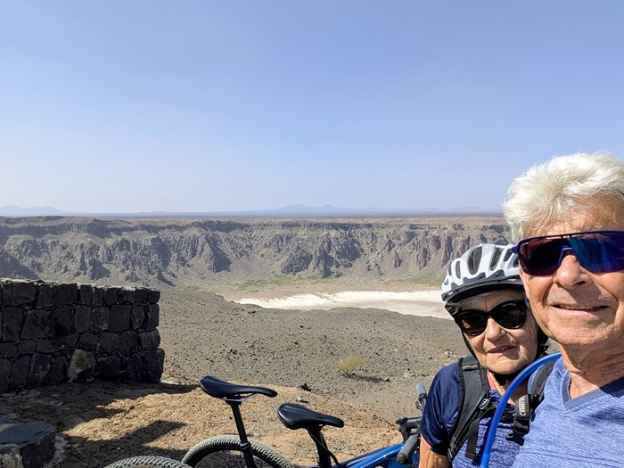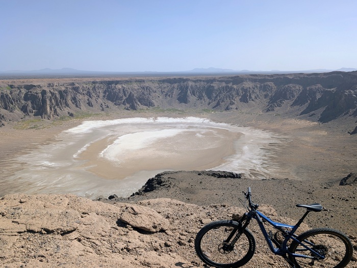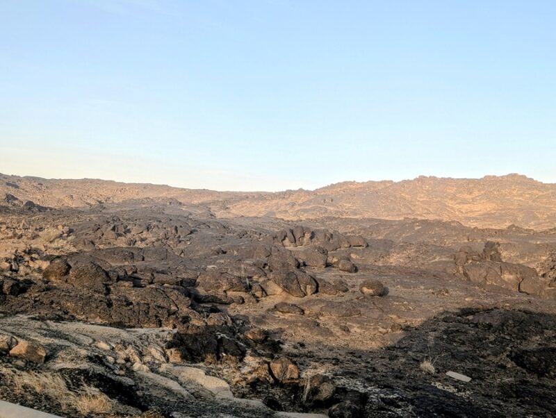 Direction le volcan Al Wabah mais avant il a fallu sortir de Djedah et ses deux fois quatre voies embouteillées, nous avons mis 3 h. Du coup nous nous sommes arrêtés au milieu de rien dans une plaine volcanique. Enfin nous avons pu utiliser les vélos pour faire le tour du cratère ce qui fut une promenade très agréable.