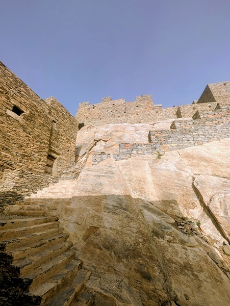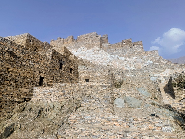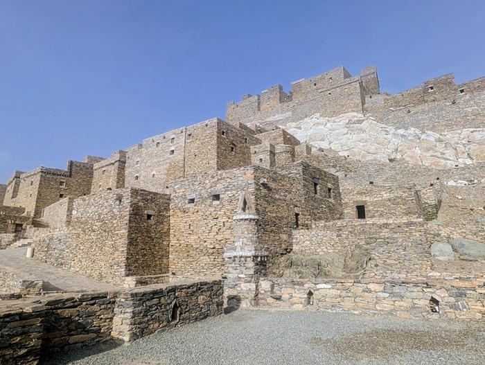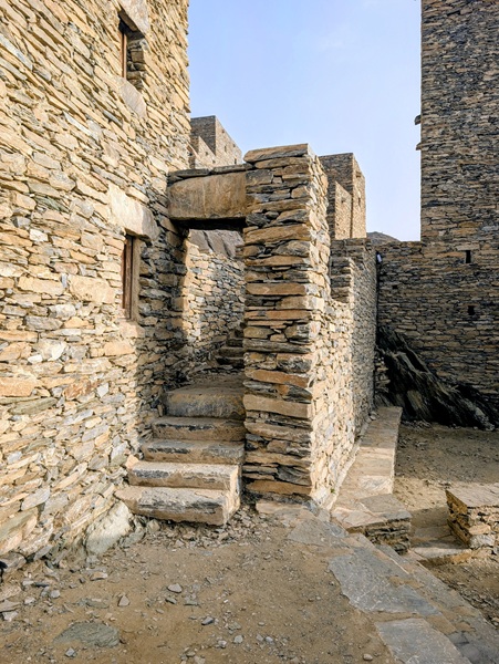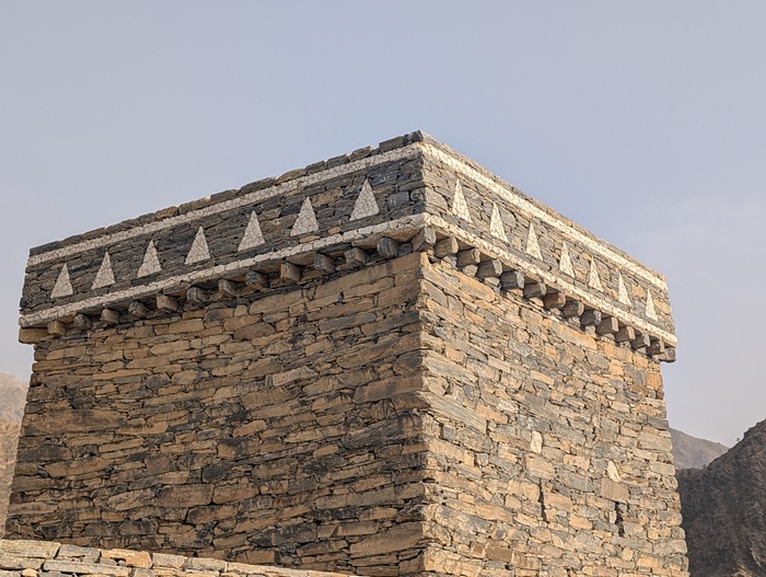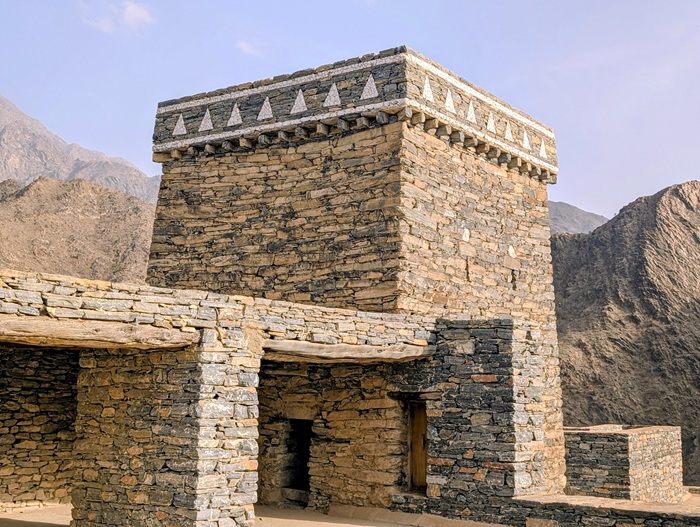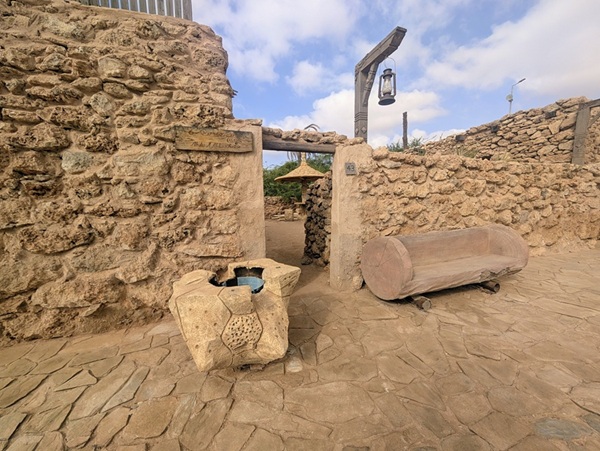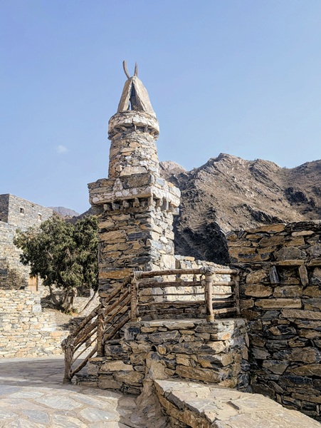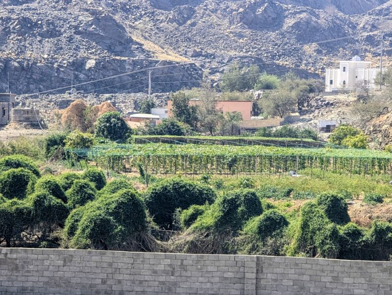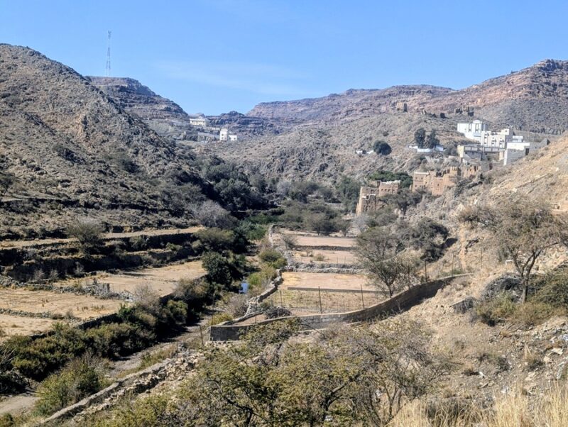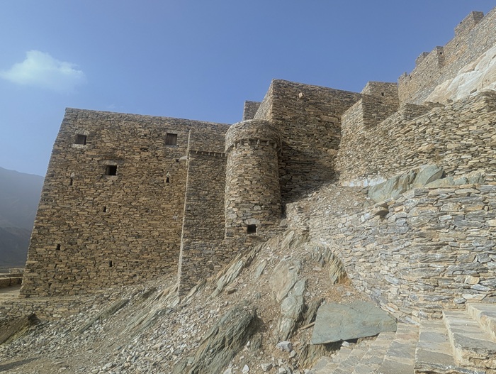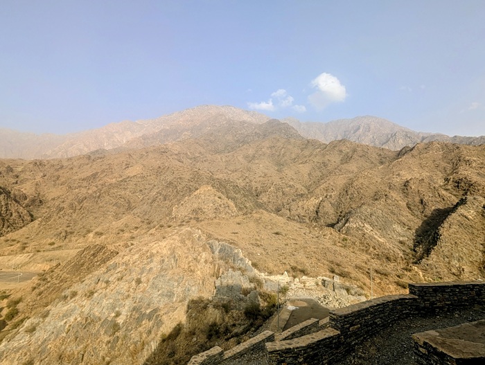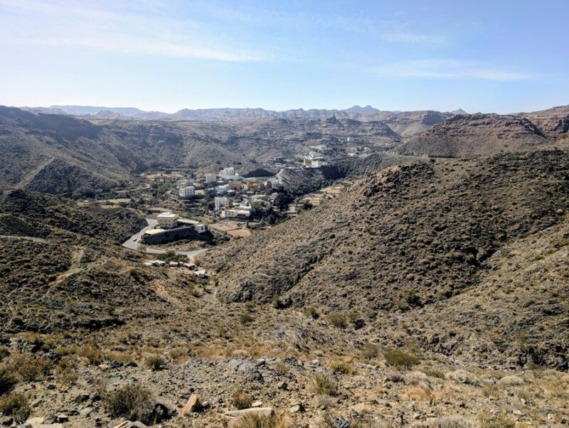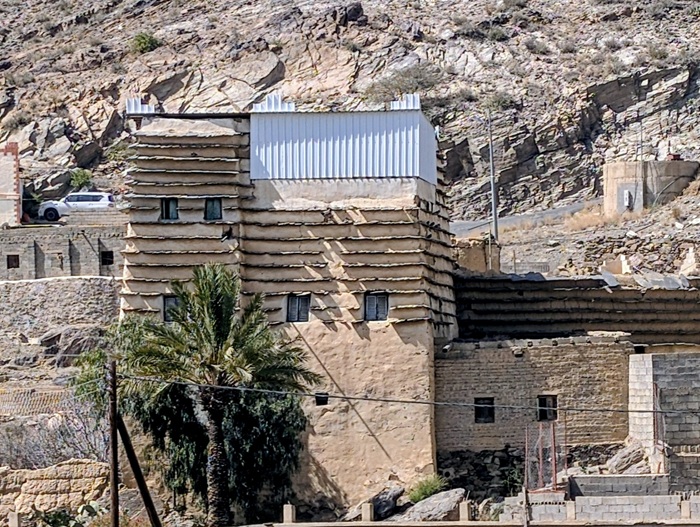 Au retour sur le continent, nous nous éloignons de la mer et le changement de décor à travers les montagnes est radical. Nous passons à Rija al Ma’a heritage village qui est joli mais trop bien restauré.