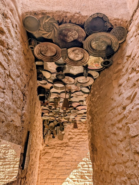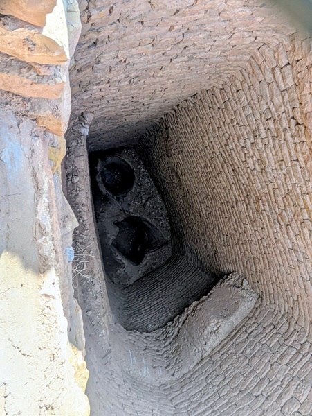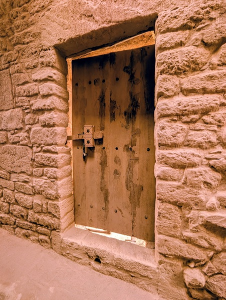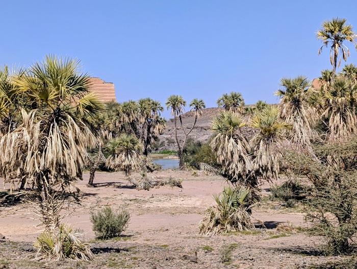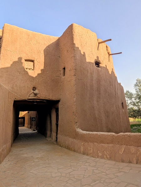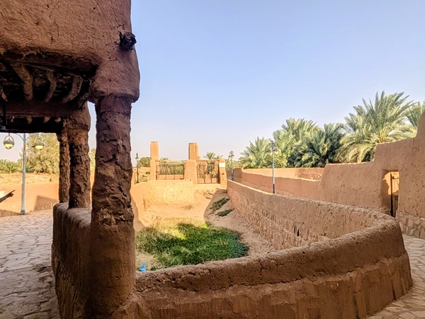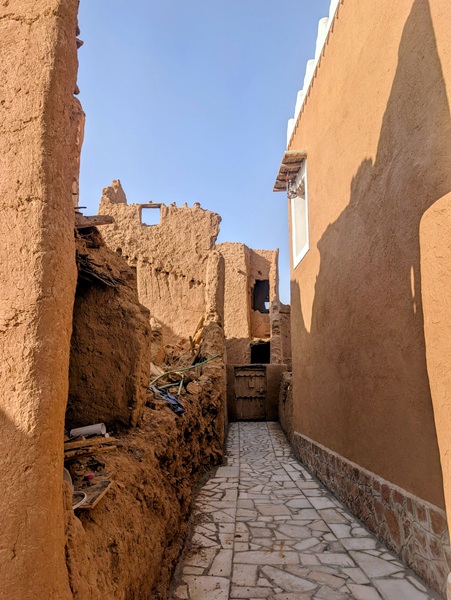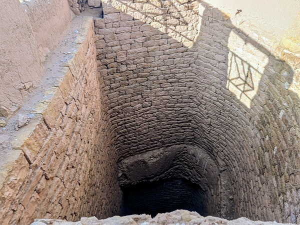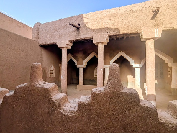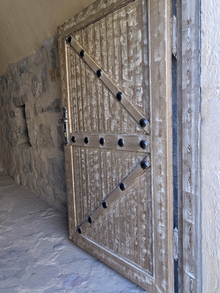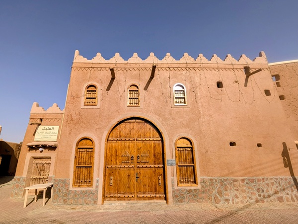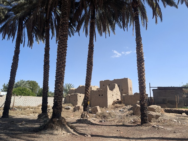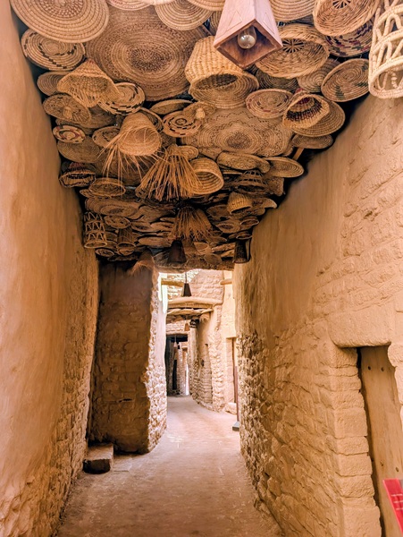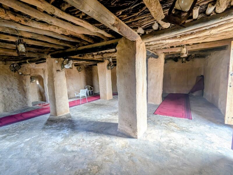 En descendant vers le sud, nous nous arrêtons à Ushaiquer un village historique en cours de restauration, au milieu d’une oasis. Les murs sont en pisé avec de belles portes en bois.