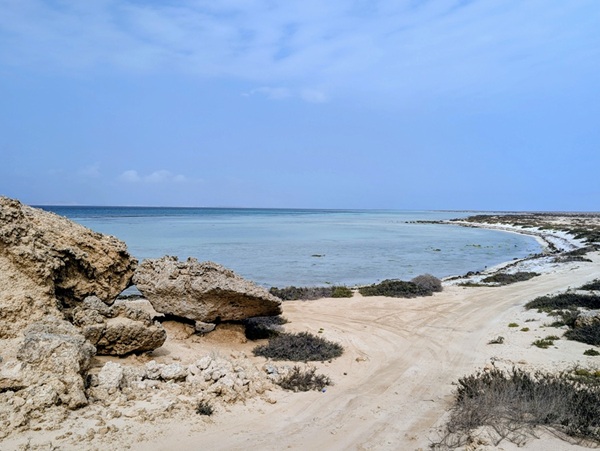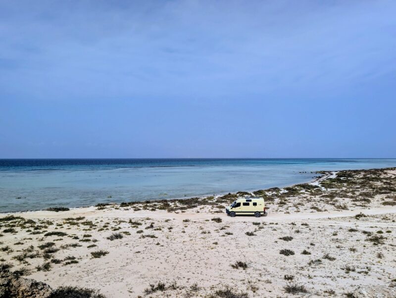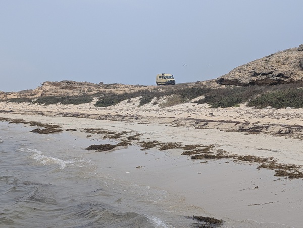Alain profite du vent pour faire du kite surf surveillé par les militaires et un garde (les deux seuls véhicules présents dont nous n’avons pas compris l’utilité). Nous nous arrêtons pour la nuit près d’une mangrove et le lendemain sur une autre plage où Alain peut encore faire du kite mais là pas de gardes pour le surveiller. Nous avons bien apprécié cette escapade au milieu de la nature.