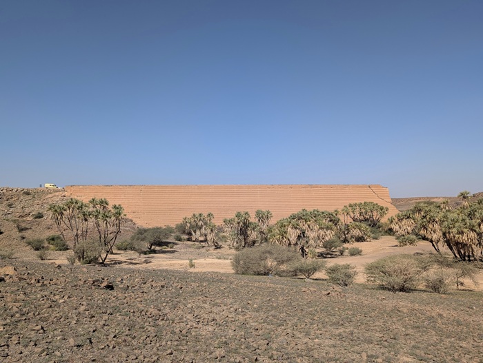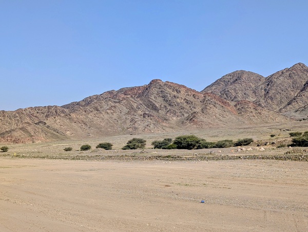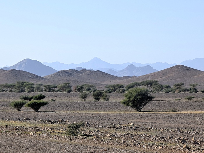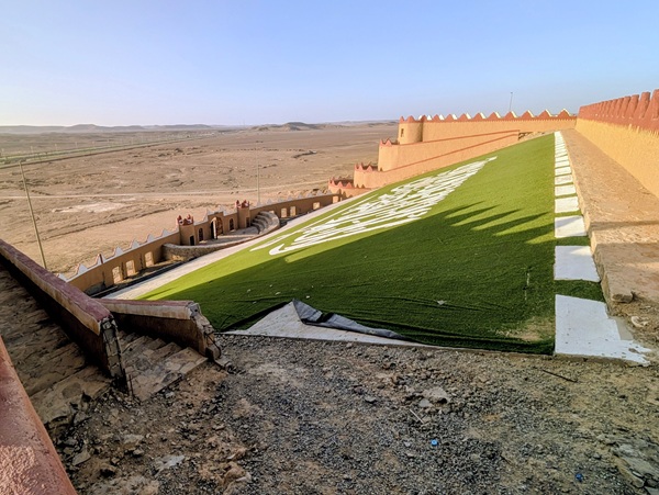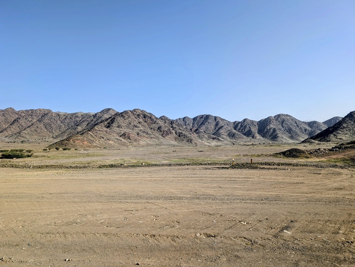 Nous avons essayé de poursuivre mais par deux fois nous avons dû faire demi-tour à des check- points où ils se demandaient comment nous étions arrivés là, le secteur entier étant réservé aux véhicules accrédités « chantier trojena ».