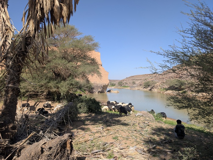 Nous prenons la direction de Tabuk en passant par Tayma petite ville au milieu d’une oasis avec un puits datant du VI ème siècle avant J.C. Restauré récemment selon l’ingénierie originale. Charpente et poulies en bois permettaient l’utilisation de dromadaires pour monter l’eau.