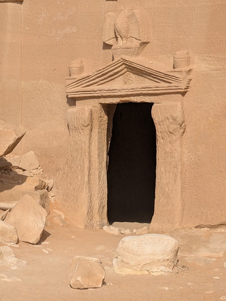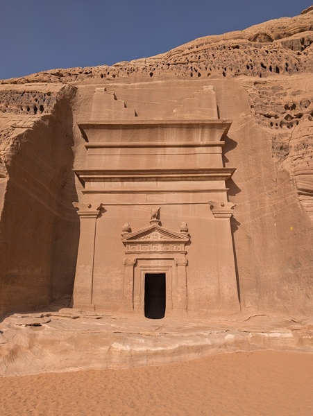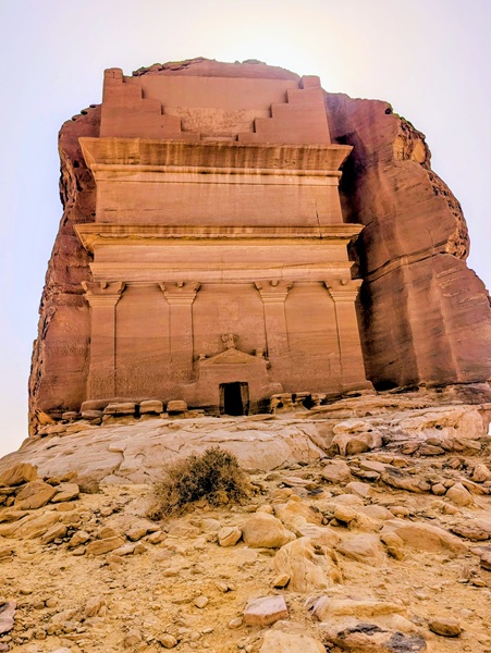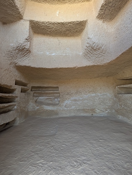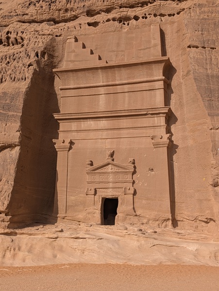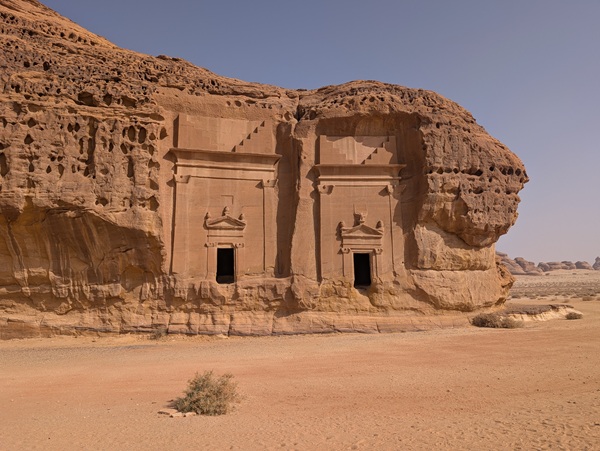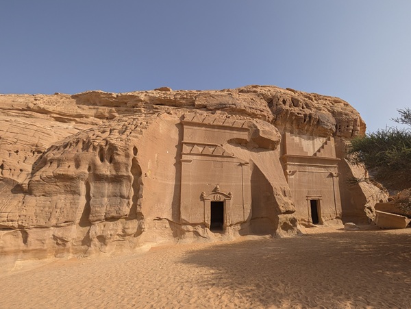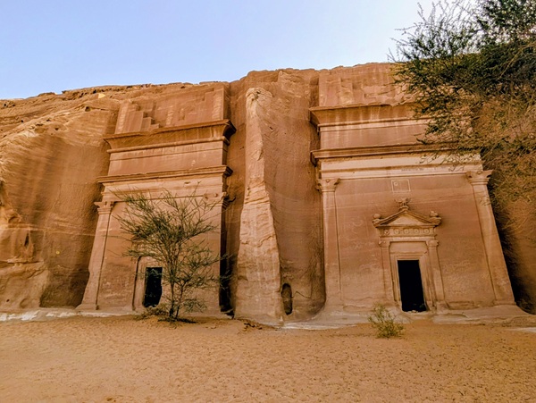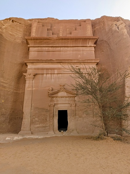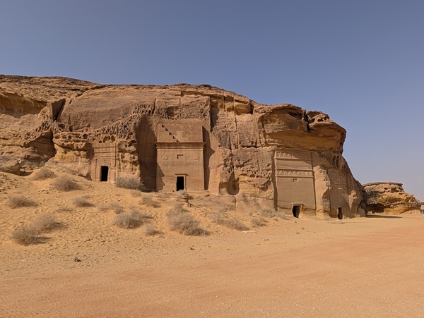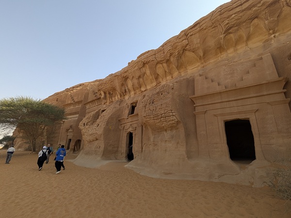 Toujours à Al Ula, nous visitons le site archéologique de Hegra avec ses 108 tombes Nabatéennes, un avant goût de Petra. La visite intéressante a duré 1h 30 en bus.
