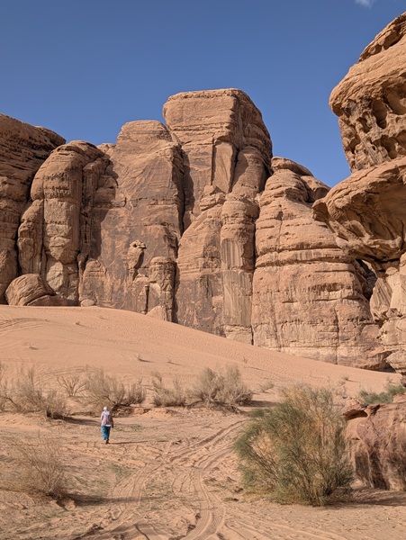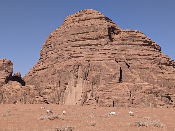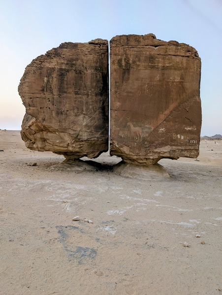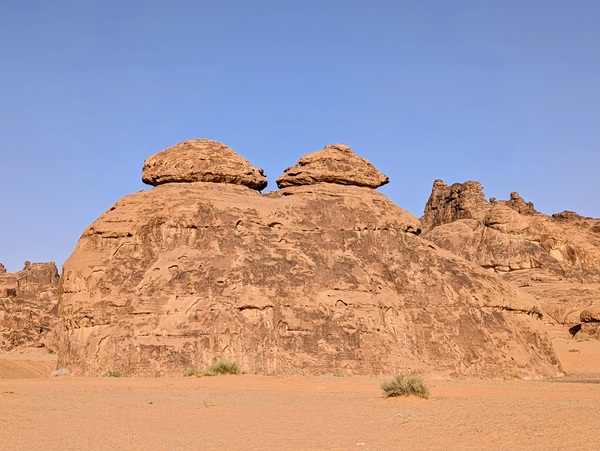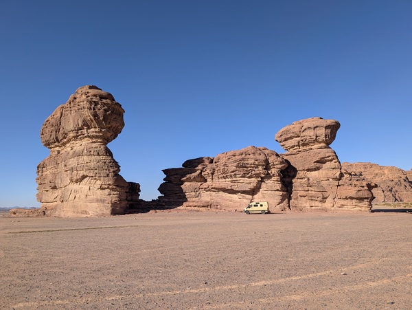 Notre visite de l’Arabie Saoudite se continue vers le nord en passant par le « Ship Rock » et nous partons sur des pistes sablonneuses au milieu de rochers aux formes inouies.
