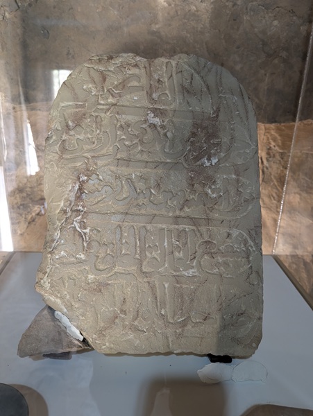 Avant de trouver un bivouac nous refaisons le plein d’eau à une mosquée. Puis notre arrêt se fera en haut d’une butte derrière un étonnant « château » décor aux murs en pisé entourant la « chahada », profession de foi de l’islam.