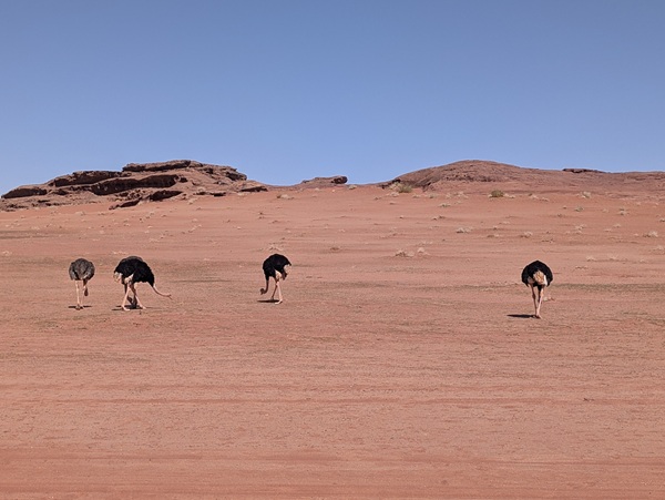 Dans le désert d’Hisma nous allons à la réserve de Bajdah où nous pouvons voir Oryx, gazelles, autruches. Nous y passons la journée, enchantés de voir ces animaux ainsi que de parcourir de belles pistes.