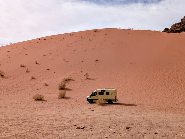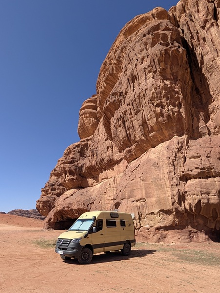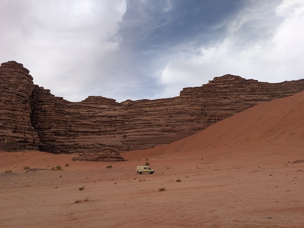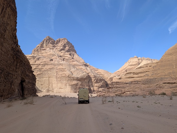 Notre entrée fut un peu laborieuse, passage au scanner pour le camion, fouille, assurance, CPD…Deux heures et demi après, nous voilà en Jordanie. Puis achat de la carte sim pour chacun, retrait d’un peu d’argent jordanien.