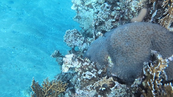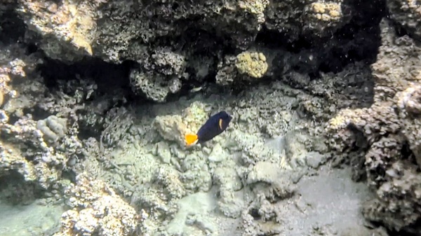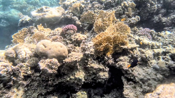 Nous nous arrêtons sur un parking au bord de la mer rouge et nous enfilons nos maillots pour découvrir les fonds marins. Nous voyons de beaux coraux ainsi que des poissons et même un tank !