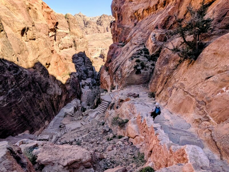 Après cette visite nous prenons la direction de Pétra. Nous avons été émerveillés par le trésor mais cela fut bien fatiguant surtout après les 700 marches pour aller voir le haut lieu du sacrifice puis en redescendre. Nous avons marché 12km dans ce site. Il n’y avait pas trop de monde et les guides étaient assez insistants pour gagner leur vie.
