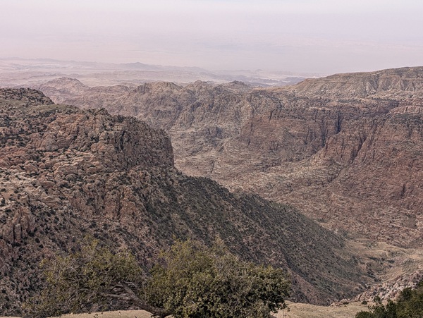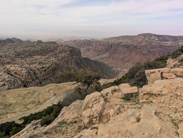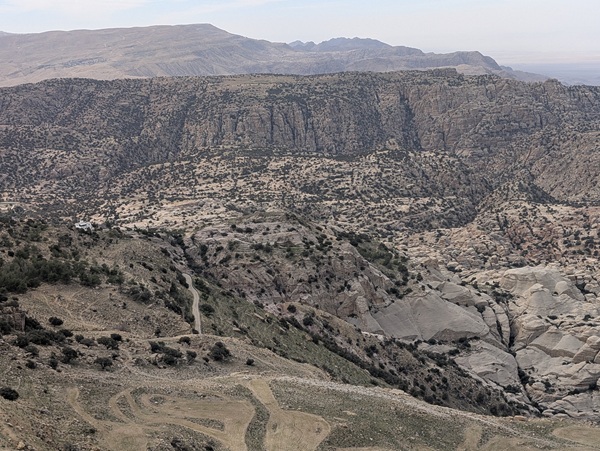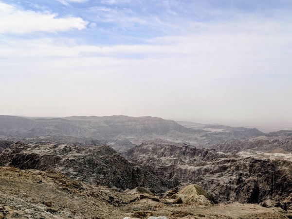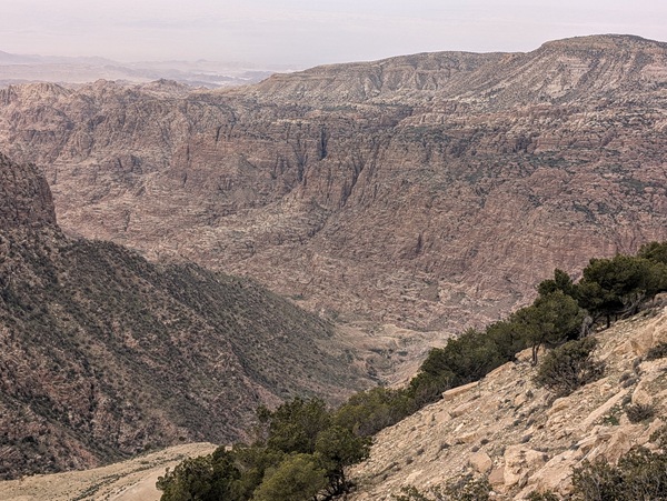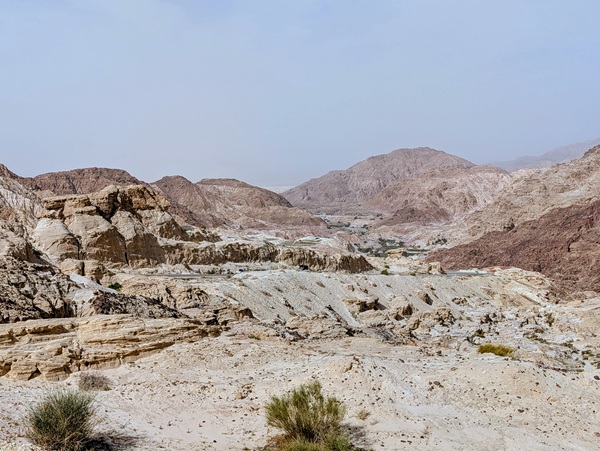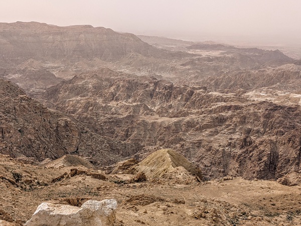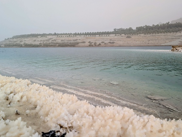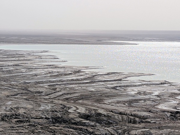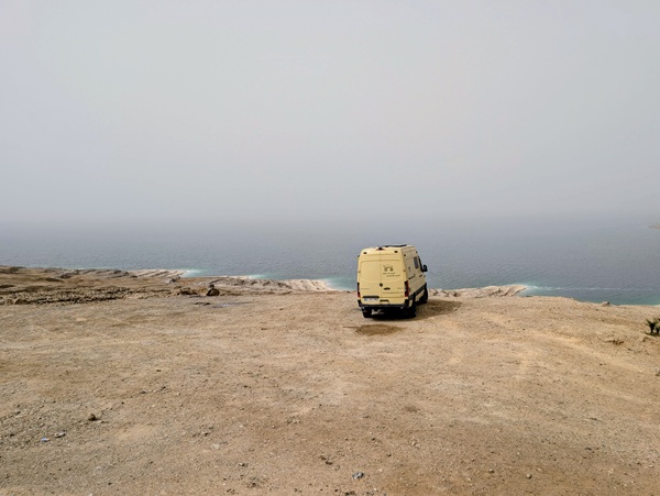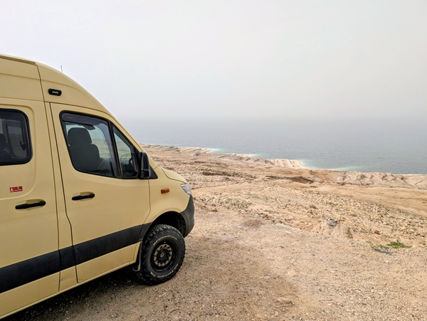 L’autre site incontournable est la mer morte, nous en prenons la direction par une montagne scénique mais la brume et la poussière nous empêchent de profiter pleinement du paysage.