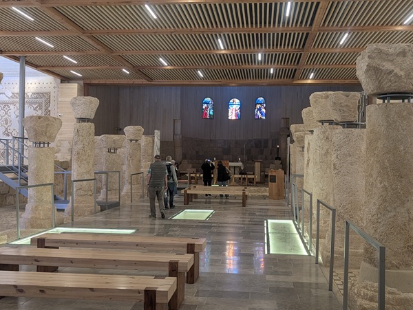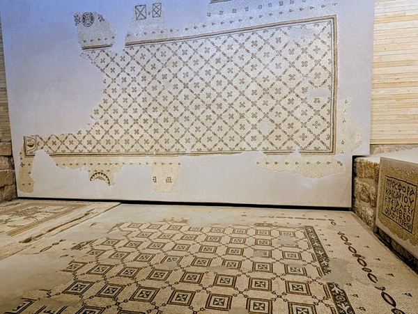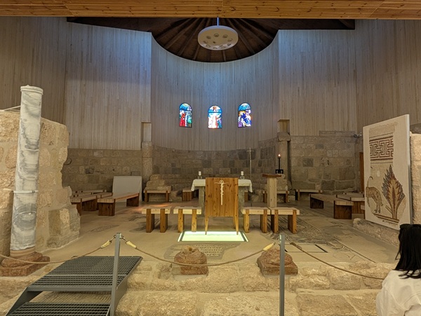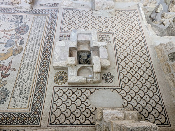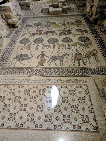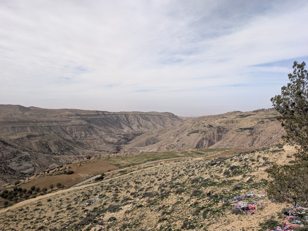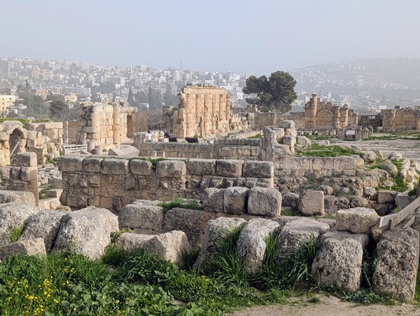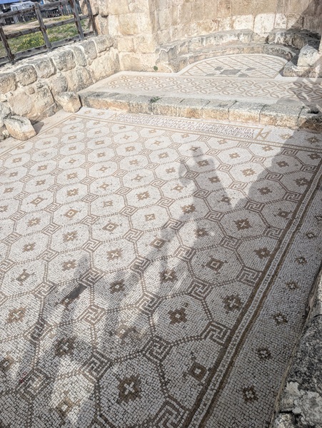 Après la mer morte nous continuons notre chemin le long de la vallée du Jourdain pour nous rendre à Umm Qais. Quand nous arrivons au site une personne pas très aimable nous demande de revenir demain car le site est fermé. Du coup nous prenons la direction du Mont Nébo pour admirer les superbes mosaïques datant de l’an 530. Elles sont bien conservées et l’ensemble nous a enchantés. Malheureusement la vue sur la mer morte, le territoire palestinien et Israël ainsi que sur la vallée du jourdain se refuse à nous à cause du brouillard.