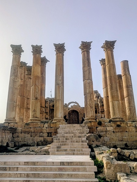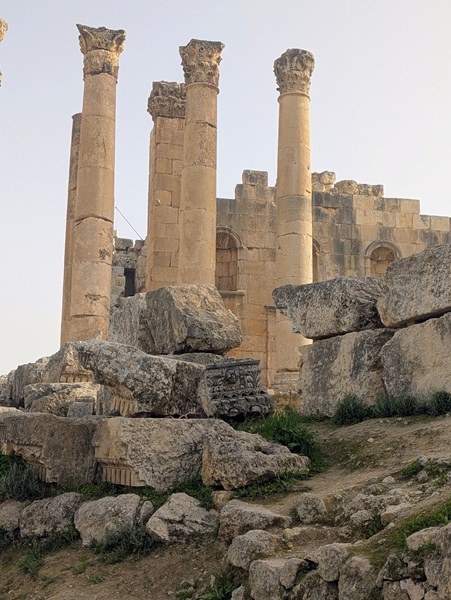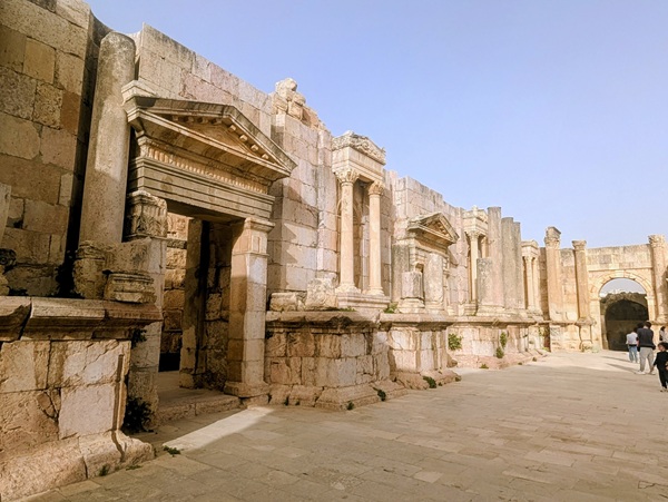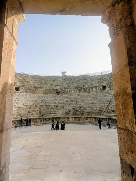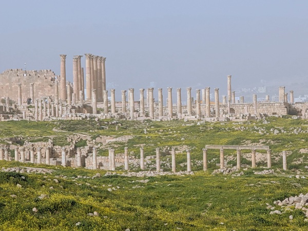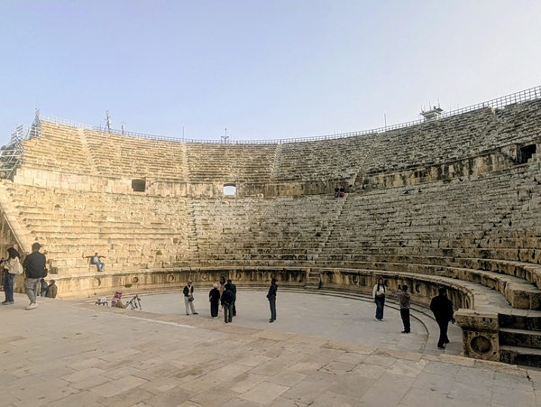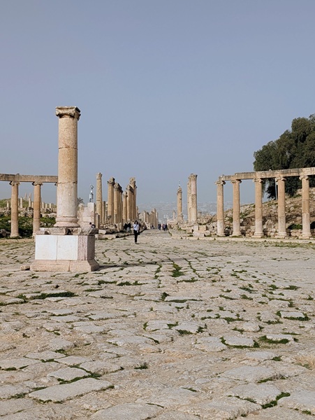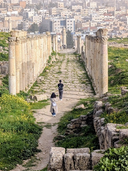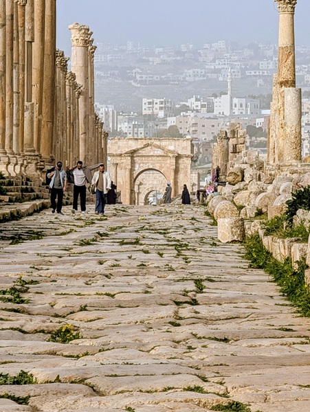 Jérash fut surtout une ville romaine où nous allons visiter le site archéologique bien conservé. Nous passons sous l’arc d’Hadrien, grande porte de 13m de haut, pour arriver sur l’hippodrome. Notre visite continue vers plusieurs points incontournables. Après 2h de visite nous rejoignons Vagabond fatigués.Nous avons beaucoup aimé ce site.