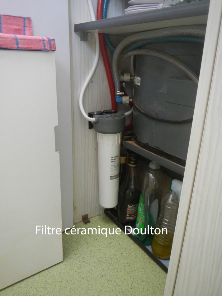 -Montage d’un purificateur d’eau Doulton avec son robinet dédié pour ne plus avoir à acheter de l’eau en bouteilles plastiques.
