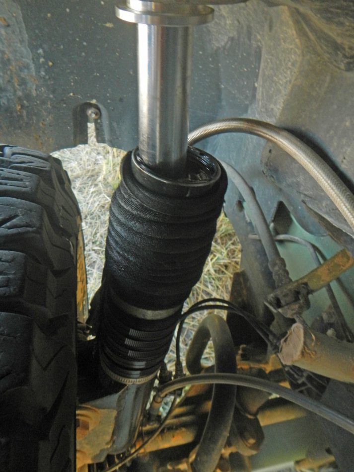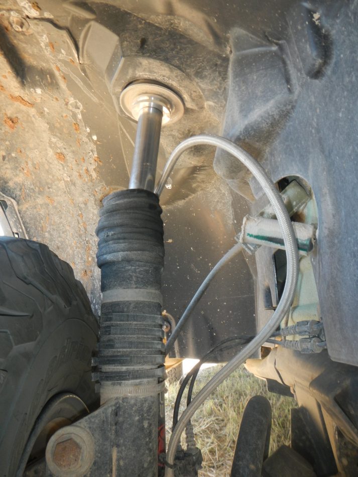 Les amortisseurs Scorpion nous ont rapidement créé des problèmes, nous avons dû démonter les AV et les remplacer par des amortisseurs d’origine car les coupelles de tête d’amortisseur AV se sont détruites