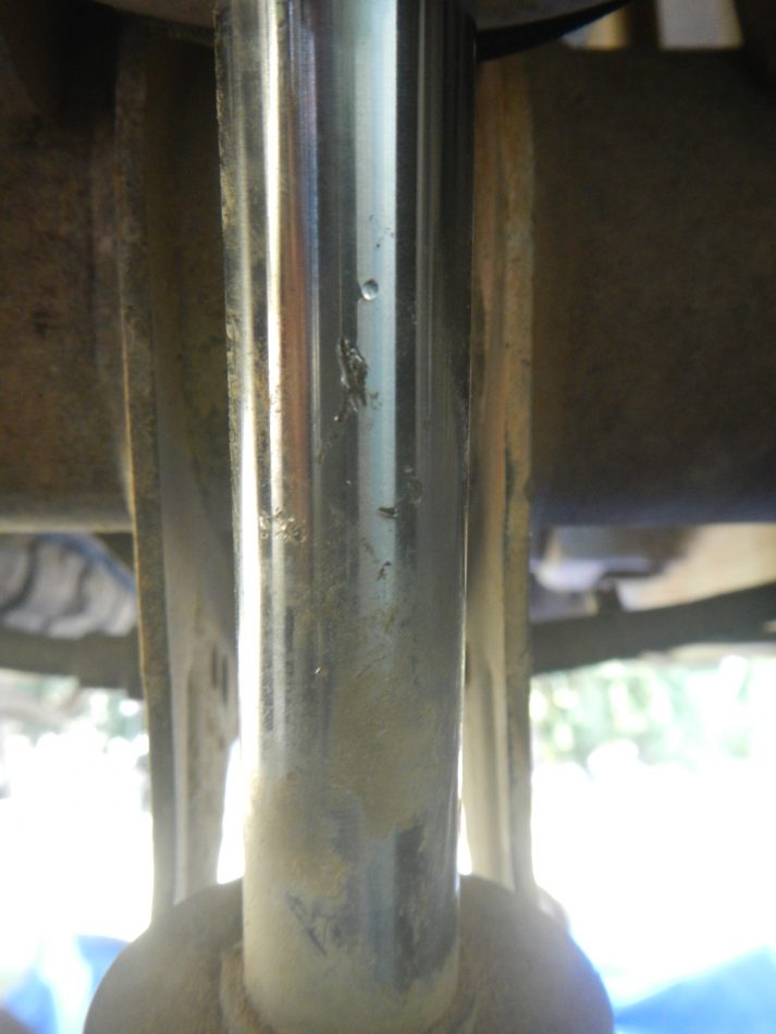 Après avoir remplacé les coupelles, un amortisseur s’est cassé car l’écrou de piston s’est dévissé causant la mise en travers de la tige. Les AR ont tenu plus longtemps bien que les tiges se soient rapidement abîmées suite à la destruction des chaussettes de protection néoprène beaucoup trop fragile.